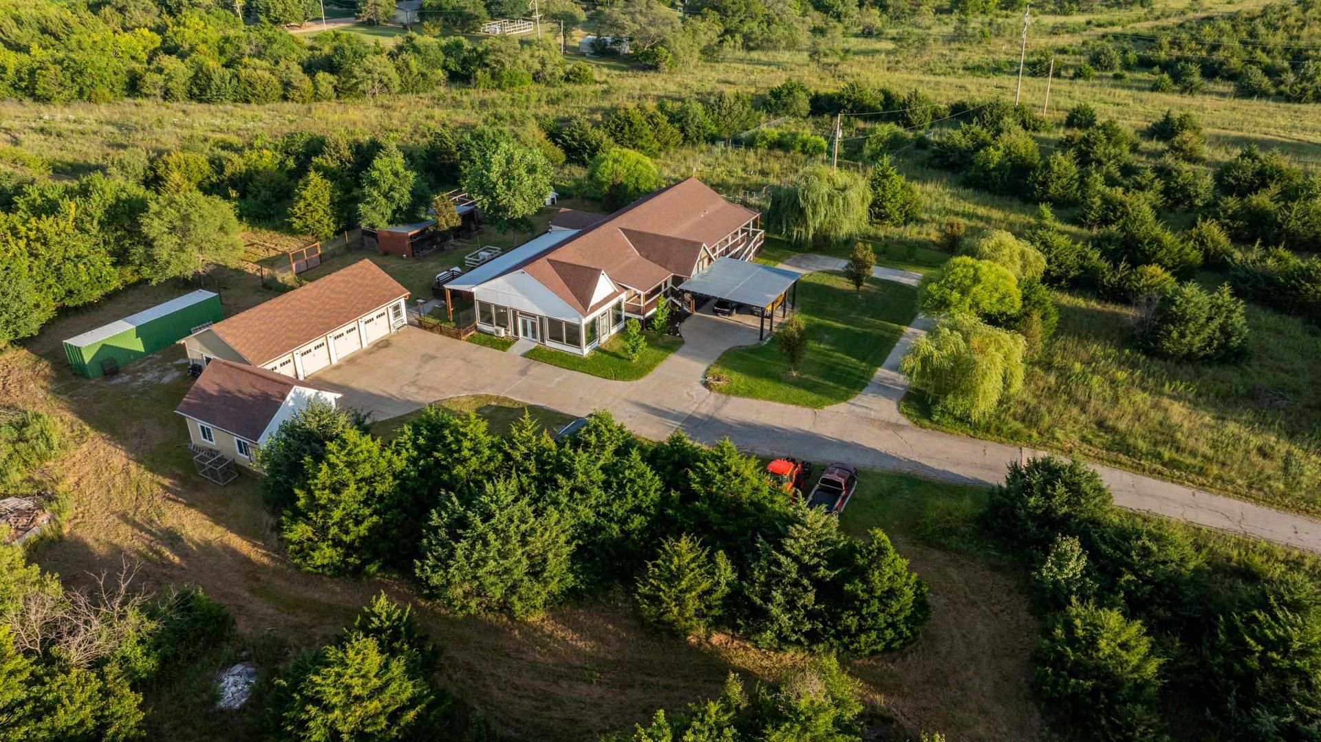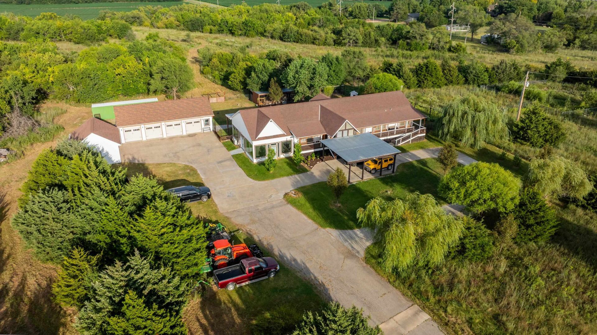 MULTI PARCEL PROPERTY SELLING SEPARATE AND TOGETHER - ONLINE AUCTION ONLY. BIDDING OPENS: Monday, April 27th, 2026, at 12:00 PM (cst) | BIDDING CLOSES on Wednesday May 27th 2026, with TRACT 1 closing at 12:00 PM (cst). TRACT 2 Bidding closes at 1:00pm. TRACT 3 will open at a combination price of Tracts 1 & 2 and bidding closing at 3:00pm. Bidding will extend and remain open on each tract until 3 minutes has passed without receiving a bid per tract. Property available to preview by appointment only. The property will be sold as is, where is and bidders shall only rely on their own due diligence, information, judgment, and inspection of the property and records. Any property lines shown on pictures are approximate and not official. This property will be sold subject to any applicable Federal, State, and/or Local Government Regulations. A buyer's premium of ten percent (10%) of the final bid will be added to the final bid price of each tract to determine the total purchase price. Each tract is selling subject to seller confirmation. TRACT 1: Consists of 29.1+/- acres with heavy timber and scenic views featuring a 3500sqft custom-built modular home, constructed with 2x6 exterior walls, features a split floor plan. When pulling up to your new home, you can choose to park in the concrete circle drive, which includes covered parking for up to four vehicles next to the home, or in either the 21x24 two-car garage or the 50x26 four-car garage detached. The primary suite includes a spacious walk-in closet and bathroom. One of the three main floor bedrooms offers immediate bathroom access, making it ideal as a potential second master suite. The kitchen boasts beautiful cabinetry and granite countertops, with all stainless-steel appliances included?featuring a gas cooktop. Enjoy year-round sunrises on the open deck or in the 11'x49' temperature-controlled sunroom, which includes an additional gas cooktop, grill, prep counter, and sink. Prefer sunsets? No problem?you can enjoy those, either from the covered porch on the west side of the home or the second enclosed, temperature-controlled sunroom on the north side. The basement offers dual access: one stairway in the center of the home and another near the north end. In the basement, you'll find three non-conforming bedrooms, additional living space currently being used as a gym, and an abundance of storage. Plumbing has been roughed in for a kitchenette area, and a backup generator is also included. TRACT 1 DISCLOSURE: In the event the parcels are sold separately, a new additional driveway will be installed at the cost of the seller with estimated location as shown on drawings. TRACT 2: Consists of 29.1+/- acres with heavy timber and watershed pond featuring Kellogg frontage and ease of access to Kellogg. Being centrally located between Andover and Augusta on Kellogg/US 54 this site would make for a great homesite and other development options and opportunities such as but not limited to creating additional homesites, installation of tiny homes for glamping sites for income streams and potential commercial development. One-of-a-kind property featuring large acreage like this having US 54 highway frontage does not come along very often. TRACT 3: Consist of 58.1+/- ACRES sold as one parcel and has much to offer in its present position. Opening bid of Tract 3 will be the total amounts of Tract 1 and Tract 2 being combined. All tracts are being sold subject to seller confir *** Kitchen cabinets, countertops, stove, dishwasher in the basement kitchenette area will remain with property and transfer with property to successful bidder at closing. *** ***PERSONAL PROPERTY AUCTION*** Subject to a successful property auction and closing all other personal property including but not limited tools, household items, vehicles, tractor and attachments, mower etc. found on the premise will be sold at live auction immediately following the sale with separate and additional terms to be announce