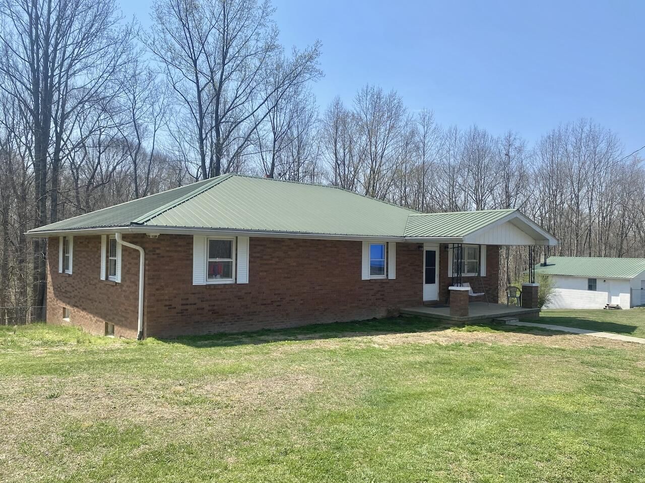 Nice well-kept countryside home in Knifley, Kentucky! This brick home consists of approximately 1,600 sq. ft. and is nestled on 3 acres m/l not far to Green River Lake. Home boasts three bedrooms and two full bathrooms, living room. The kitchen/dining combo furnishes an open space perfect for family gatherings and the rear deck off the kitchen and utility room provide additional space if needed. The full walkout basement offers additional storage space and leads you to a concrete covered patio great for relaxing. The metal roof ensures long-lasting protection with minimal maintenance concerns. The partially fenced yard offers security and provides a nice area for your kids or fur babies to romp and play. Additional assets of this property are 21ft. x 18ft. building located in the backyard having electric and concrete flooring with an open bay in rear of building, the 28ft.x 30ft. detached garage with concrete floor, electric and metal roof plus the wooded area that extends beyond the fence. The price is right on this gem located in Adair County, Kentucky, so schedule your private showing.