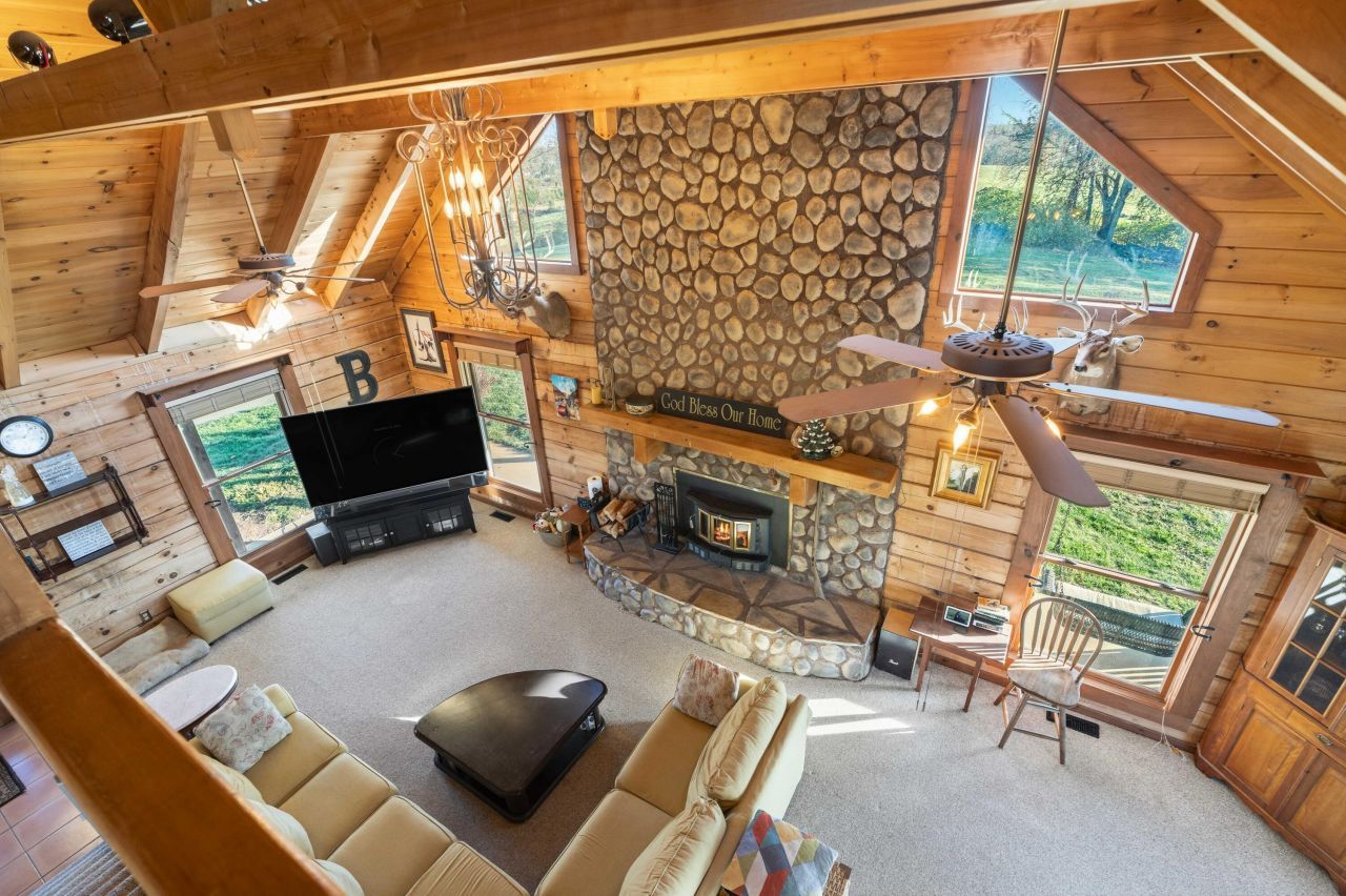 Discover this Beautiful, Conveniently Located yet Private property offering almost 35 Acres of Scenic, Versatile, and Inviting land. This Remarkable mini-farm features a Charming story-and-a-half Log home with Warm Log Interior, Vaulted, Beamed Ceilings, a Wood-Burning Fireplace (see disclosure), and a Cozy Loft that could serve as an additional bedroom. Enjoy Abundant Natural Light from the many windows, along with Separate Laundry, Two and a Half Baths, a Magnificent First Floor Primary EnSuite, and a Spacious, Relaxing Wraparound Deck with a covered section and a grill deck below???perfect for outdoor living. The land includes Beautiful Board Fencing, a Watering Trough, a Treehouse-Style Chicken Coop, a Raised Garden Bed, and a Half-Acre Stocked Pond for peaceful enjoyment. For your agricultural or recreational needs, the property is already set up with Eight Campsites featuring raised fire pits. It is zoned Agri-Tourism, adding even more Exciting potential. (For more pictures, see Bourbon Trail Campgrounds.) Outbuildings include a 40 X 40 Barn with a Large Lean-To Overhang and 2 Finished Stalls with room for up to 6, and a Spacious 50??40 Shop with electricity, generator, concrete floors, a loft, RV-Sized Garage Doors, a 50 Amp Hook-Up, and a closed-in office???creating endless Functional and Flexible workspace options. Additionally, there is a Two and a Half Car Detached Garage. The Massive 34+ Acres, featuring 4 Fields for Rotation capability, is Conveniently located near the Bourbon Trail and Bluegrass Parkway, as well as Lexington and Louisville. With Expansive Views, Peaceful Surroundings, and Unlimited Possibilities, this property truly offers a Unique and Captivating lifestyle. Call for your private showing, and PACK YOUR BAGS!