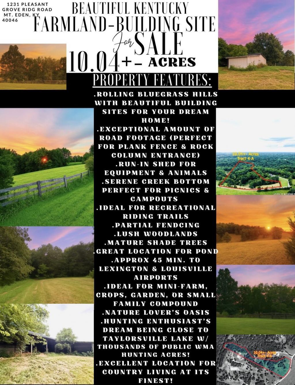 Welcome to your very own slice of heaven! Located in the rolling bluegrass hills of Anderson County, Kentucky this property offers beautiful building sites for your dream home! The huge amount of road frontage is ideal for plank fence and rock columns to give you the GRAND entrance everyone desires. Being partially fenced makes this the perfect place for your mini-farm, livestock, crops, garden, or small family compound all while still being in an excellent location----close to the very popular Taylorsville Lake where you will find thousands of public WMA hunting acres, public boat ramps, and state park, all for your enjoyment! Create your own vision of perfect country living with your tiny home, cottage, manufactured home, hunting lodge, off-grid living, vacation home, barndominium, or custom built home---all welcome here! The run-in shed is ideal for storing your equipment or giving livestock a place to get out of the weather. There is a serene creek bottom that is perfect for campouts and picnics. The lush woodlands offer great recreational riding trails. Throughout the property you will find an abundance of mature shade trees and picturesque scenery. There is also a perfect place for a beautiful pond (with fountain?!) towards the front of the property that could easily be added. Spend your nights star gazing and your days watching the gorgeous sunrises while sipping coffee on your future front porch. This property is a perfect blend----it's a nature lover's oasis and hunting enthusiast's dream while still only being only approximately 45 minutes from BOTH Lexington and Louisville airports! So, grab your building plans, tree stands, pigs, chickens, sheep, goats, horses, cattle, and other farm friends and come enjoy country living at its finest! Call today to schedule your viewing! Please note: ATV tour of the property can be provided with 24 hours notice (with pre-approval letter or proof of funds.)