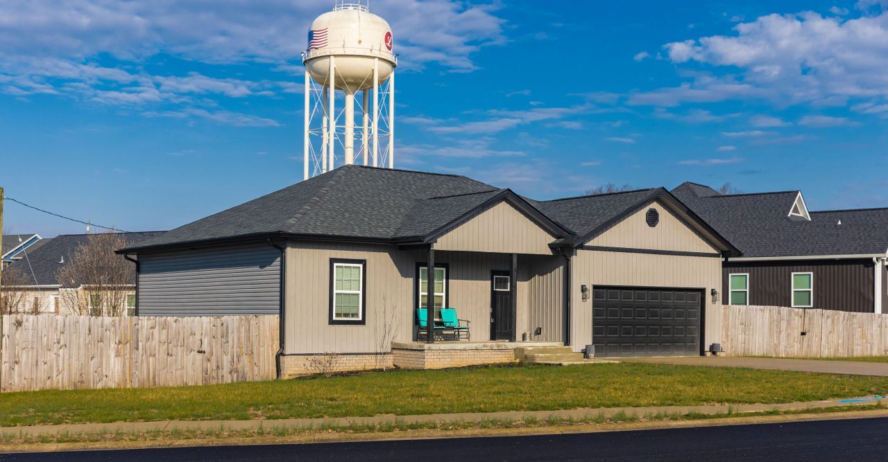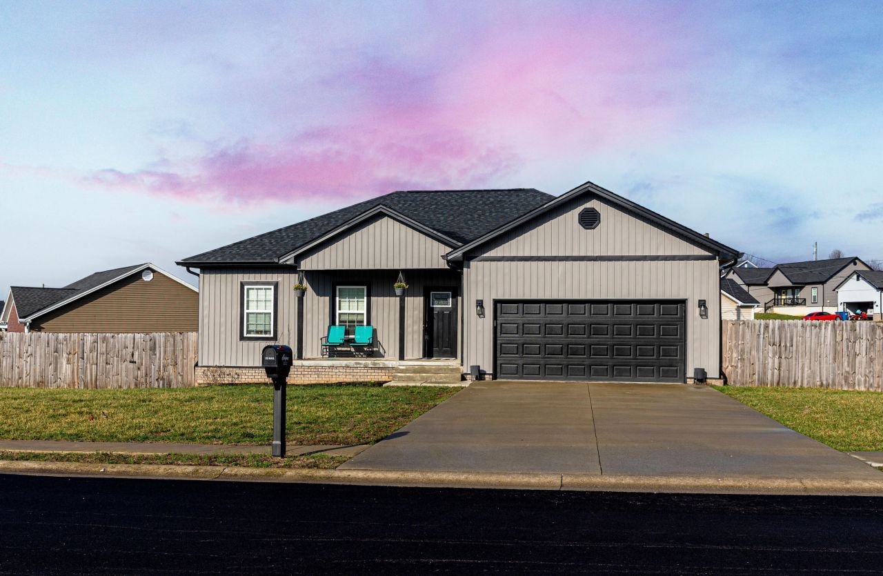 Ranch with finished basement! Beautiful newer home near downtown Lawrenceburg! Built in 2022, this modern home offers an open/split floor plan with stylish laminate flooring throughout and a layout designed for comfortable living. The main level features 3 spacious bedrooms and 2 full bathrooms, including primary suite with a tile shower. The kitchen is a standout with a large island, perfect for entertaining or everyday use. The walk out basement expands the living space with an additional bedroom, making it ideal for guest, a home office, or multi-generational living. Enjoy outdoor living with a fenced back yard and a welcoming front porch. Conveniently located with easy access to US 127 and Frankfort.
