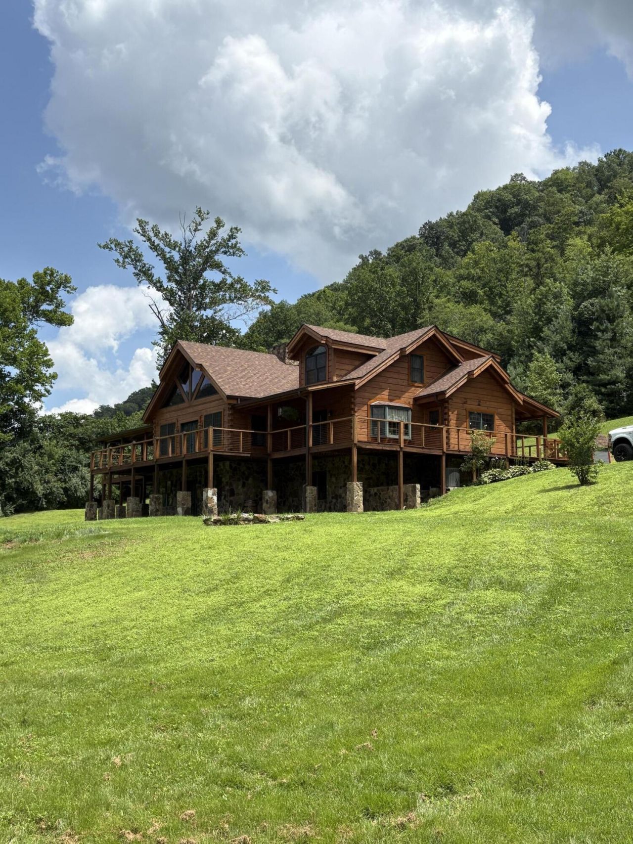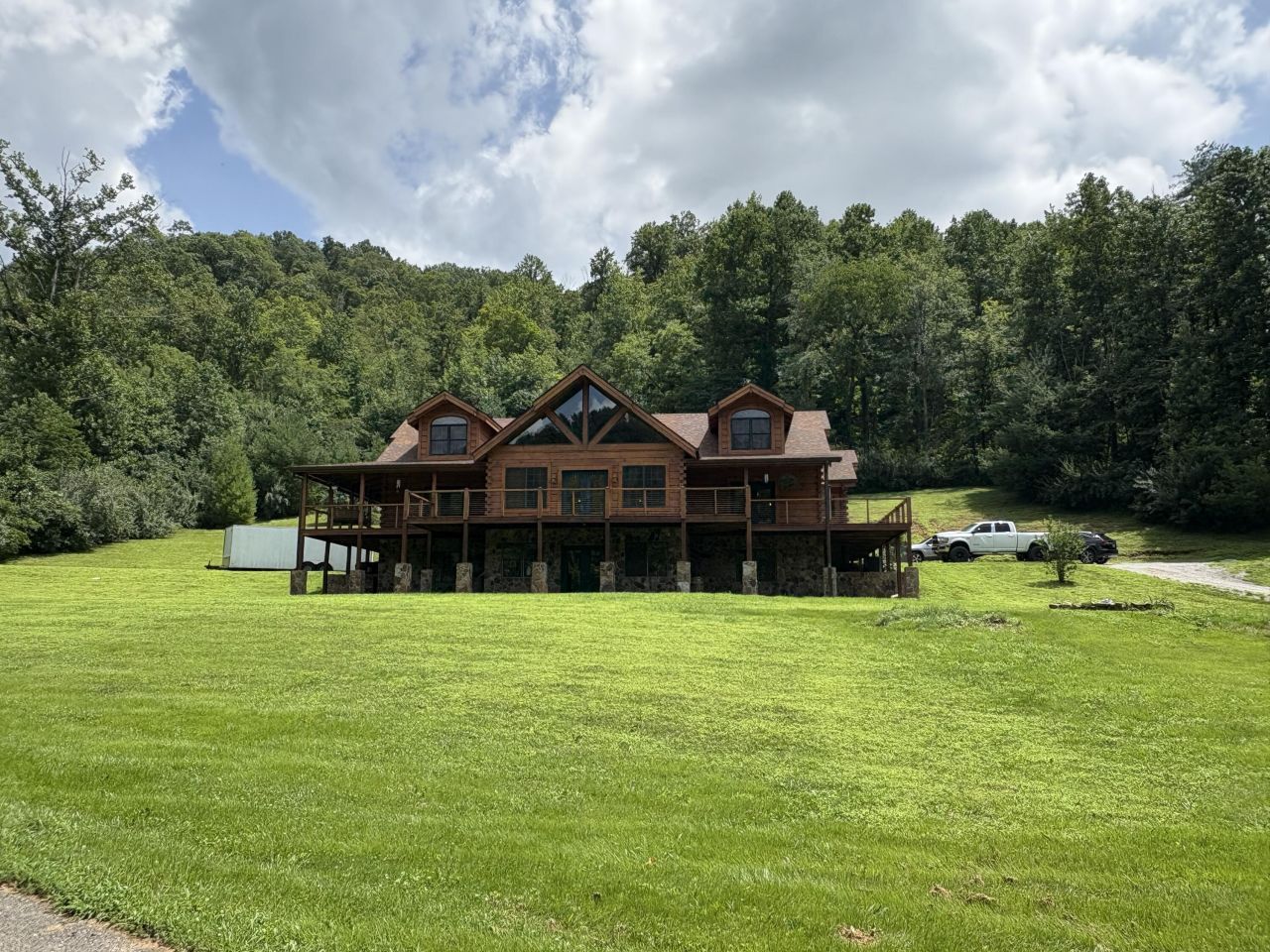Nestled in a quiet, serene location, you'll find this beautiful, custom-built log cabin. With 4 bedrooms (2 of which can be primary bedrooms) and 4 1/2 baths, there are plenty of options for the family. Large kitchen with walk-in pantry and attached dining area. Huge family room with 14 ft, ceilings and windows offering an expansive view of the outdoors. Cozy gas fireplaces both upstairs and down. Large laundry room. Primary bedroom has attached bath with walk-in shower and jetted tub. Hardwood flooring throughout. Upstairs you'll find two other bedrooms with plenty of storage, a full bath and yet a fourth bedroom with attached bath and walk in closet, Balcony views of the first floor and outdoors are outstanding! A finished, walk-out basement (completed in 2023, adding additional sq footage) complete with a kitchen, utility room and large full bath offers lots of extra living space and could be used as an Air BnB. French doors lead to a covered porch. Commercial grade laminate flooring throughout basement. Charming wrap around porch with plenty of privacy in the back. Almost 13 acres with a cleared attached lot perfect for another home. Manchester is known for its beautiful. riding trails, fishing and kayaking. Close proximity to Red River Gorge and Cumberland Falls. New roof, gutters, AC units (4-ton Trane and (2) 2-ton Trane units) all in 2024 with paperwork available. New septic field in 2025. Exterior of the entire home has been sandblasted and restored! Buyers to verify sq. footage. PRE-QUALIFIED buyers only! Some furniture and recreational items may be negotiated. $$$SELLER TO PAY 100% OF BUYER'S CLOSING COSTS!$$$ See video link below!