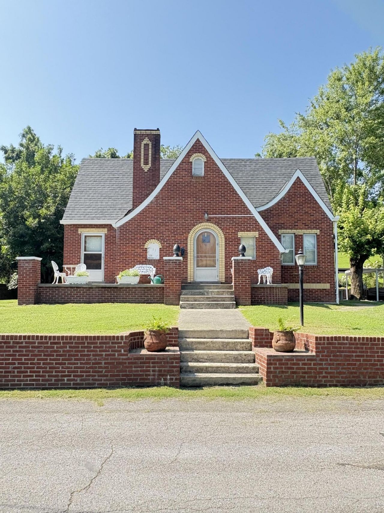 This brick Tudor style home sits quietly at the end of House Avenue, in the city limits of Manchester. Adorned by beautiful landscaping and arched doorway, this home offers a traditional air of days gone by. The main floor boasts a large living area with a cozy fireplace and a spacious family room. An elegantly designed and updated eat-in kitchen with all the modern amenities is the cooks dream! A French door just off the family room leads to a space perfect for an office or perhaps even a sunroom. On this first floor, you'll also find 2 bedrooms, one full bath and an extra-large laundry area. Upstairs you'll find three other spacious bedrooms and a full bath. One of the bedrooms is currently used as a den. A full unfinished attic offers plenty of space for storage and could be easily converted to an additional room. A full, unfinished basement provides storage, safety and the option of additional living space. This home exudes charm with its mostly all original doors, arched doorways. and some existing hardwood flooring. A two-car detached garage sits just to the side front of the home with another large garage at the back side of the house, perfect for campers or boats, or extra cars. Large front patio and covered side detached carport. An additional large building which is currently used as an antique and used furniture store is also included on the property. This versatile space offers endless possibilities -whether for a small business, workshop, or hobby area. Convenient to all the amenities town has to offer. One minute from Advent Health ,5 minutes from Manchester FCI and walking distance to the city park. Come see what Clay County has to offer! We have over 600 miles of ATV riding trails, 30+ miles of kayaking and paddling on the Goose Creek River. Clay County also boasts some of the finest Muskie fishing around. Located approx. 1 hour from Cumberland Falls and one hour from Red River Gorge, placing world-class natural beauty at your fingertips. In addition, Clay County is home to some of the top schools in the. state. Don't miss the opportunity to own such a rare find in Manchester!