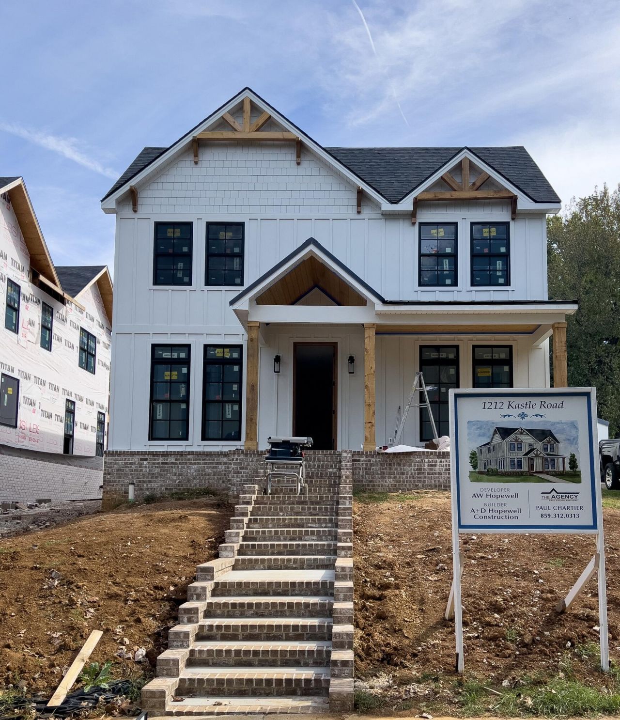 This gem will be completed soon!! Discover 1212 Kastle Road, a stunning custom home nestled in the heart of Lexington's Montclair neighborhood - an area known for its historic charm and exciting transformation. As one of the city's most desirable and fast-evolving communities, Montclair is where architectural legacy meets elevated new construction, and this residence is a standout example. Designed, developed, and built by AW Hopewell and A+D Hopewell Construction, this nearly 5,000-square-foot home offers refined finishes, thoughtful design, and flexible living spaces across three beautifully finished levels.. Inside, rich wide-plank hardwood flooring and 9-foot ceilings set the tone for luxury. The main level is anchored by an open-concept kitchen and living area perfect for entertaining. The chef's kitchen features quartz countertops, high-end stainless steel appliances - including an 8-burner gas range - a full-size refrigerator and freezer, and a large island that opens to the spacious family room with a custom fireplace. Also on the main level, you'll find a private guest suite with full bath, a flexible room ideal for a home office, and a family ready room designed for organization, storage, and daily ease. A covered patio just off the living area opens to a private backyard - perfect for outdoor living. Upstairs, the primary suite is a true retreat, featuring trey ceilings, a spa-inspired en suite bath with large his and her vanities, a custom tile shower, a freestanding round soaking tub, and an expansive walk-in closet. Also on the second floor are a Jack-and-Jill bedroom setup and an additional bedroom with its own private bath, ideal for family or guests. The finished basement continues the home's livability with 9-foot ceilings, another bedroom and full bath, and versatile open space perfect for a home theater, fitness studio, golf simulator, or playroom. Exterior details include a blend of brick and fiber cement siding, gabled rooflines with Hardie shake accents, and a spacious three-car garage. Every element has been carefully selected to combine beauty, durability, and curb appeal. This is more than a home - it's a lifestyle opportunity in one of Lexington's most exciting neighborhoods. Don't miss your chance to experience the new standard of living in Montclair.