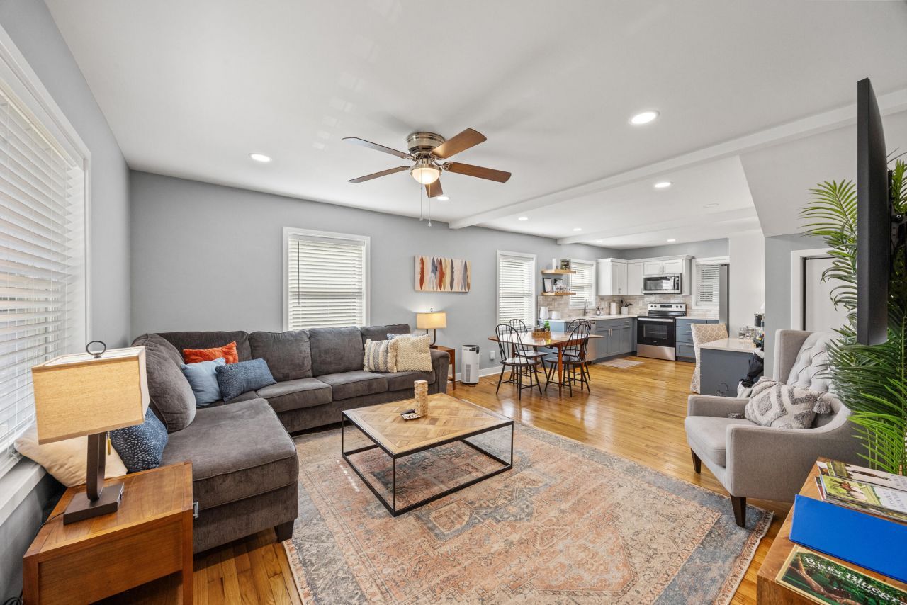 Welcome to 406 Delcamp Drive, a beautifully updated 3-bedroom, 2-bath home that blends classic 1950's charm with modern style. Step inside to find an open-concept living space filled with natural light, hardwood floors throughout, and a stylish kitchen featuring stainless steel appliances, quartz countertops, and two-tone cabinetry. Two bedrooms and a full bathroom are conveniently located on the main level along with laundry, while the spacious primary suite upstairs offers a private retreat with its own updated bathroom featuring elegant tilework and contemporary finishes. Enjoy morning coffee on the covered front porch or entertain guests on the spacious back deck overlooking a fenced backyard - perfect for kids, pets, or backyard gatherings. Conveniently located just minutes from downtown Lexington dining and shopping, and UK campus, this move-in ready home offers comfort, character, and convenience all in one package.