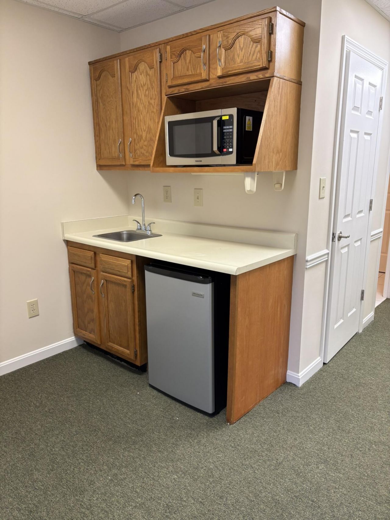 Lower level unit 22 c. This unit has 3 offices, kitchenette and half bath. Unit has a door to exit rear of unit. Each office has glass doors, windows and transoms to allow for plenty of light. Carpeted floors, neutral paint on all walls. Tenant pays for electric. Water furnished as well as HOA fee paid by landlord. Parking in front. One year lease security deposit is $900.00.