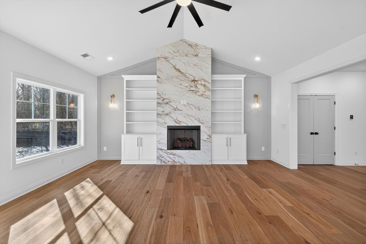 Welcome to The Gloria II by Artique Custom Homes???a stunning modern story-and-a-half that perfectly blends luxury, comfort, and smart design. Located on a semi-cul-de-sac at one of the highest points in the neighborhood, this home offers scenic views of permanent green space and parkland. Step into a vaulted living room filled with natural light, built-in cabinetry, and a cozy fireplace???perfect for relaxing or entertaining. The kitchen is a chef's dream with an oversized island, pro-series appliances, and a generous sized pantry. A tucked-away pocket office provides a quiet space to work or study. Enjoy peaceful mornings or sunsets on the covered porch overlooking wooded surroundings. The first-floor primary suite features a trayed ceiling, spa-style wet room, and a spacious walk-in closet. Upstairs, you'll find a large loft and three generously sized bedrooms. The Gloria II is designed for modern living with timeless elegance. ARTIQUE HOMES are HERS rated for quiet comfort and efficiency. Other great home sites are available to custom build your dream!