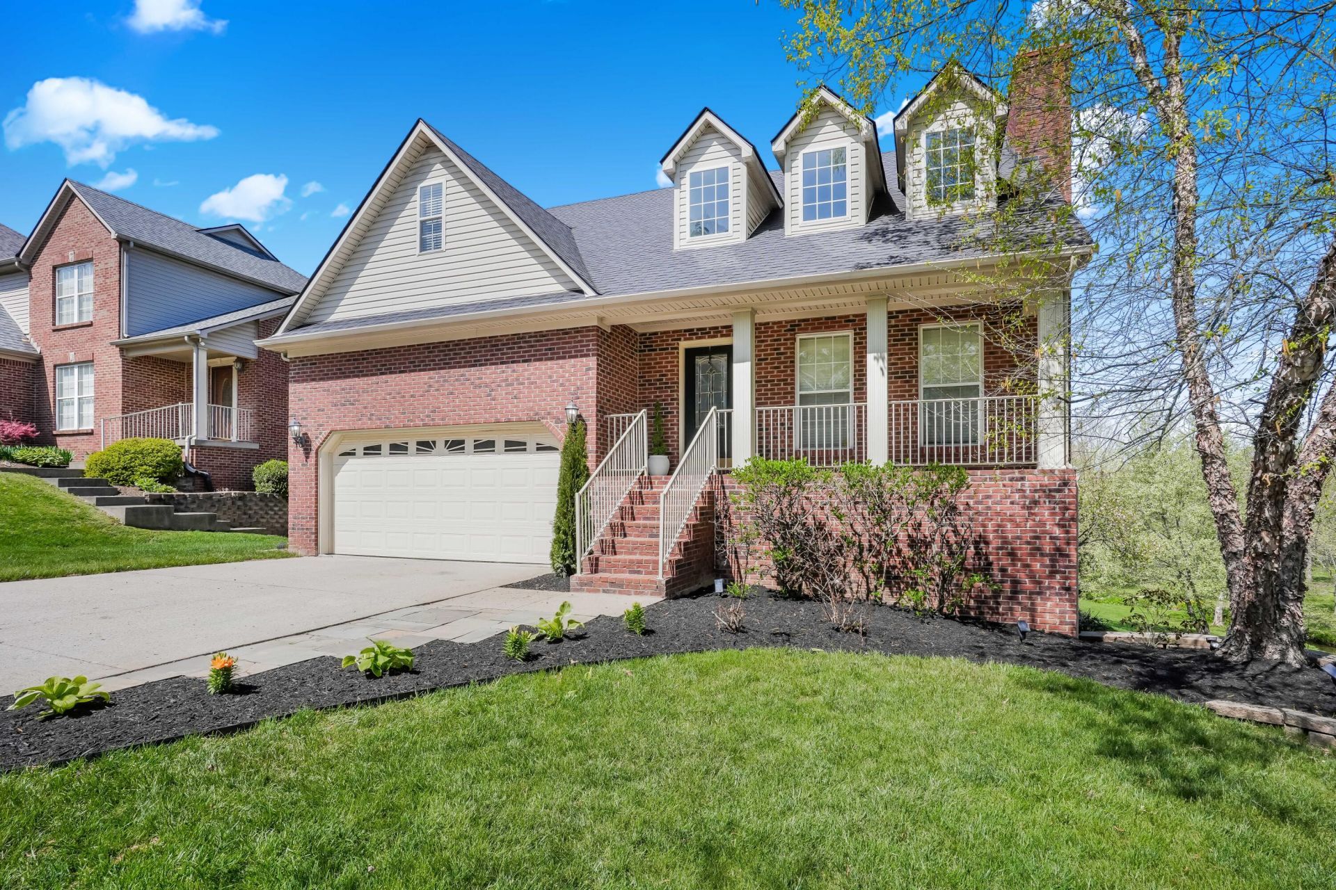 OPEN HOUSE 4/16 5-7pm. Opportunities like this don't come around twice. Welcome to this fabulous 1.5-story home nestled in the sought-after Beaumont community. Where front and rear covered porches frame stunning views of the common area greenspace, and every inch inside has been thoughtfully upgraded. The main level sets the tone immediately with updated flooring throughout, volume ceilings above the entry and great room, and a stunning open staircase makes one thing clear: this home was built to impress. The first-floor primary suite is your private retreat, complete with a beautifully updated bath. The kitchen is the heart of the home and it shows. Stylish cabinetry, granite countertops, stainless appliances, and a pantry come together in a space that's as functional as it is gorgeous. A breakfast area off the kitchen offers panoramic views of the rear yard, making even your morning coffee feel like a moment worth savoring. When it's time to entertain, the wet bar steps in and does the heavy lifting. And the covered deck out back seals the deal for year-round outdoor living. Upstairs, three spacious bedrooms each feature custom closets by Closet Concepts, plus a bonus room over the garage for whatever life demands - playroom, gym, home office, you name it. The finished walkout basement rounds out the package with high ceilings, a bedroom (current home gym) and full bath, family room, office space, and unfinished storage. This one checks every box. Come see it before someone else does!