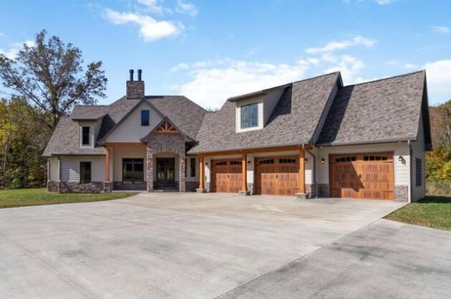 Discover modern craftsmanship and timeless beauty in this brand-new custom home set on 37 acres of serene Kentucky countryside. From the striking stone fa?ade and timber accents to the three-car garage with wood-style doors, every detail has been thoughtfully designed. Step inside to find an open-concept layout filled with natural light, featuring vaulted ceilings with exposed beams, a grand floor-to-ceiling stone fireplace, and rich hardwood flooring throughout the main level. The chef's kitchen is both functional and beautiful, showcasing granite countertops, custom cabinetry, a large center island, and premium fixtures. The primary suite provides a spa-like retreat with heated tile floors, dual vanities, and a luxurious walk-in tile shower. Upstairs, the bonus room offers extra versatility???perfect for a home office, guest suite, or hobby space. The home is designed for comfort and energy efficiency, featuring 16-SEER systems for the first and second floors and an 18-SEER system for the bonus room, ensuring year-round climate control while keeping energy costs low. The walkout basement adds even more living space, complete with a second stone fireplace and open recreation area ready for a bar, gym, or home theater. Step outside to the covered back deck or lower patio and enjoy panoramic views of your 37 private acres ??? ideal for trails, wildlife watching, hunting or simply enjoying the peaceful outdoors.
