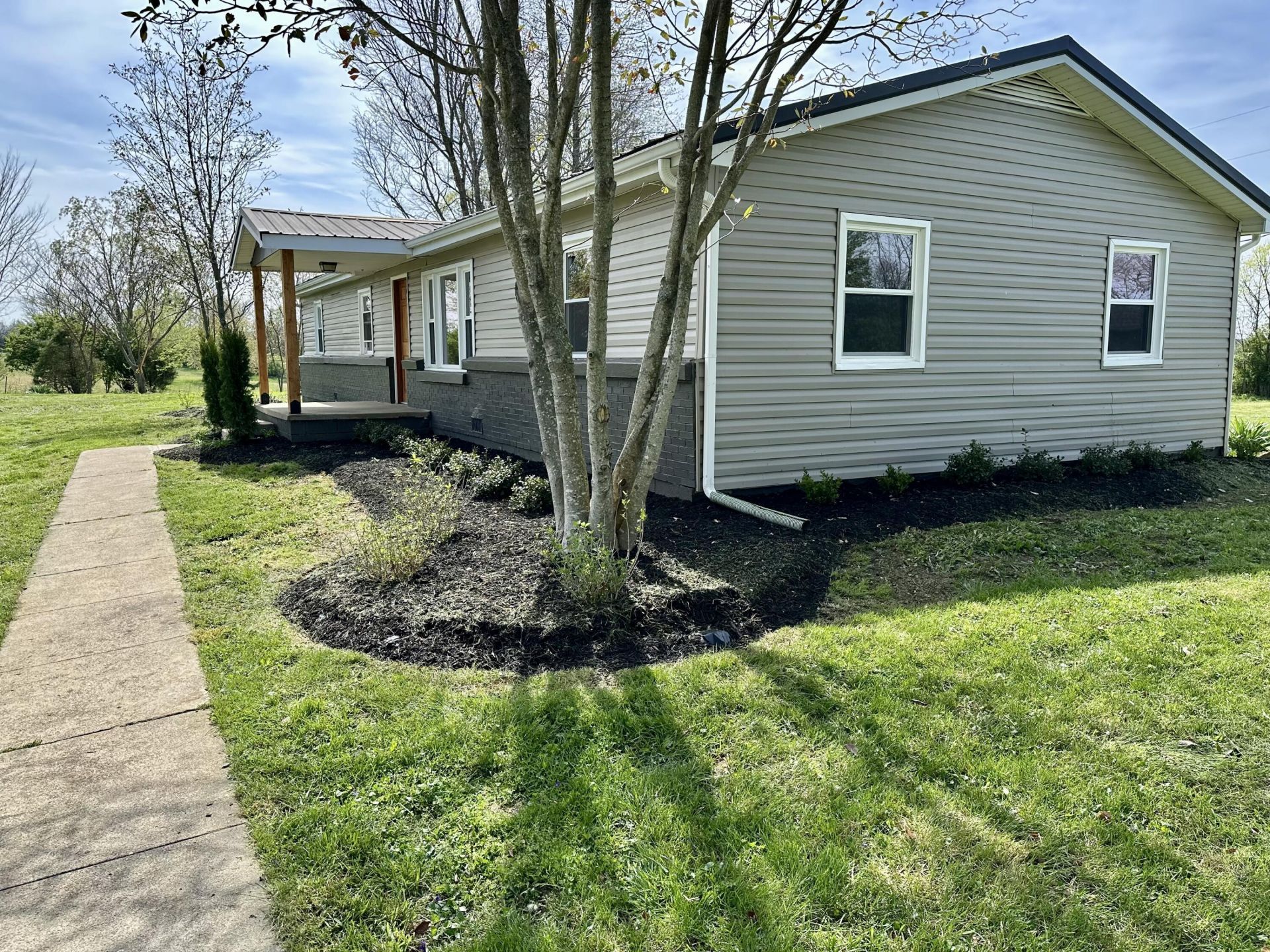 Don't miss this one. 4 Miles to Cynthiana, 25 miles to Toyota/Georgetown. This completely remodeled house is at the end of a private drive and is secluded and quiet. You have almost an acre to enjoy with flowers and landscaping everywhere. New Heat pump in 2025 and metal roof leaves very little maintenance to worry about. There are 3 bedrooms, full bath, large laundry, Kitchen/living, and a large room that could be a game room, pool table area, or any kind of work room. Living room/ kitchen is an open concept with wood beams. This would be a great home for a young family needing space for kids to roam. No HOA or fees to pay. Very limited traffic (only a farm behind it )and a nice community surrounding this newly renovated home. Owner/Agent