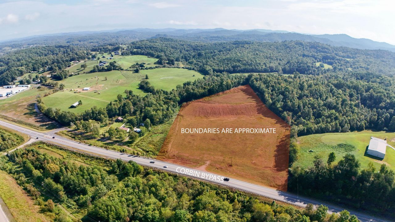 LOCATION! LOCATION! 12.89 Surveyed Unrestricted acres located across the road from Cumberland Run Racetrack and The Mint gaming hall. Corbin Bypass(Ky #3041). Sewer line to property. Buyer to do own due diligence. Investors call today! The drone images provide a stunning aerial view of adjacent properties that are currently not on the market.