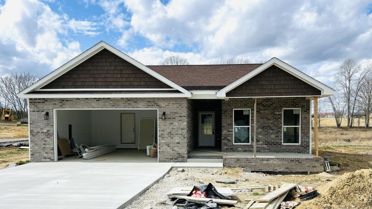 Another spacious, one-level newly constructed in Silver Hawk near Hwy W80/Russell Dyche Parkway just off Keller Road with easy access to London, Somerset & Manchester. Situated on an easily maintained .30 acre corner lot in a quaint, small neighborhood. This brick & vinyl ranch offers a 16.9X25 great room open to the 12X25 eat-in kitchen with gleaming white cabinetry, stainless appliances, granite counters, island & recessed lighting with convenient access to the 6X6 utility room. The owner's suite is 13X15.4 with ensuite containing tiled step-in shower, double vanity w granite counter & walk-in closet. The two 11.5X13 guest bedrooms are joined by a full 5X9.4 bathroom. A very inviting feature is the 11X15 covered rear patio for morning or evening enjoyment, 2-car attached garage & public sewer! This is the 7th new construction in a 14 lot development.