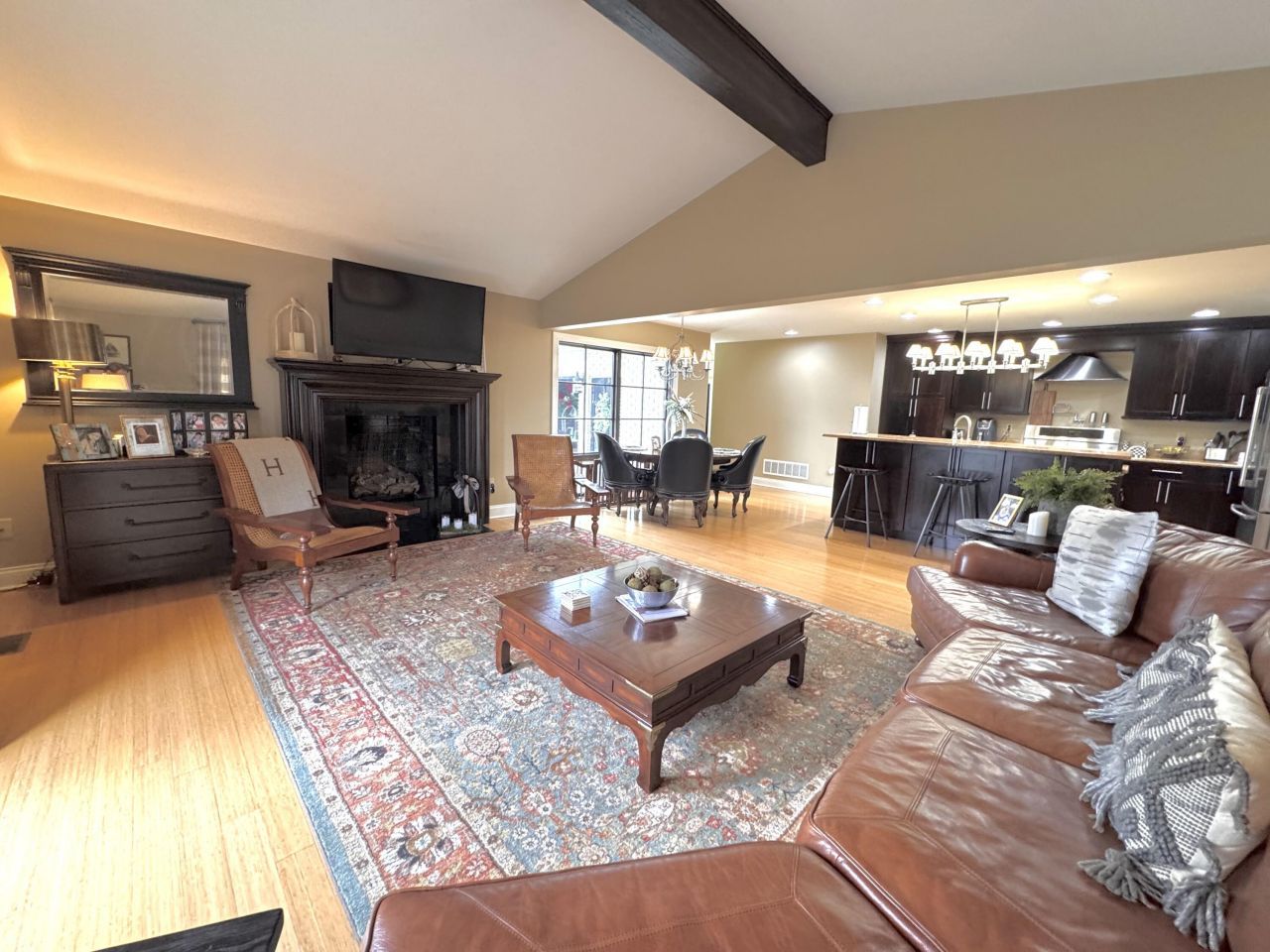 Why not have your own executive house to call home. Great space for entertaining or fun family nights. From the large open entry way with large windows and natural light to the open family room with soaring ceilings with beams, there is plenty to love about this home. The gourmet kitchen is a chef's dream, featuring a commercial-grade gas range complemented by a professional pot filler/kettle faucet, eliminating the heavy lifting from the sink to the stove as well as glistening solid surface countertops, stainless appliances and cabinet space. You can enjoy time with family, even while cooking dinner thanks to the open kitchen/ family room flow. Need space for a home office or additional living space? Take your pick! Enjoy a formal living area with large windows, hardwood floors or an open, finished basement that's cozy and the perfect space for a gaming, lounging, or make it a fourth room for guests. Separate Laundry room is a dream to keep that dirty laundry out of sight and the extra storage space in the garage is also worth mentioning, to say nothing of the hook and groove utility storage system. Walk down the long hallway to find not only the comfortable guest rooms, but you will love the large owners suite, complete with walk in closets and owners bath complete with makeup counter, solid surface vanity, tiled shower and other amenities. Now, lets take a step out back and settle into the more than just a patio, its an entire outdoor living room! From the built in fire pit to the covered sitting area with an additional fire pit and movie space. Cooking dinner is even a breeze with the natural gas hook up for your grill that is located right beside the dinning space. Plenty of space to have friends and family over just to enjoy the company. From top to bottom, there is so much to love about this residence, situated on over an acre and beautiful views of the local country club which is just across the street in front and views of hay fields and country skies just behind. Find out why this could be the house you have been wanting to call home.