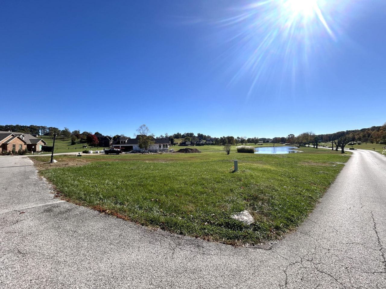 This lot located in prestigious The Oaks of London on the Crooked Creek Golf Course is cleared, level and ready for your new construction. A corner lot with street frontage of 130' and 200' and backing up to beautiful pond views, with all city utilities available- electric, water, sewer, natural gas, cable, internet & phone. the corner location makes it perfect for circular drive or drive thru garage. Enjoy the beautiful views and amenities of this desirable location!