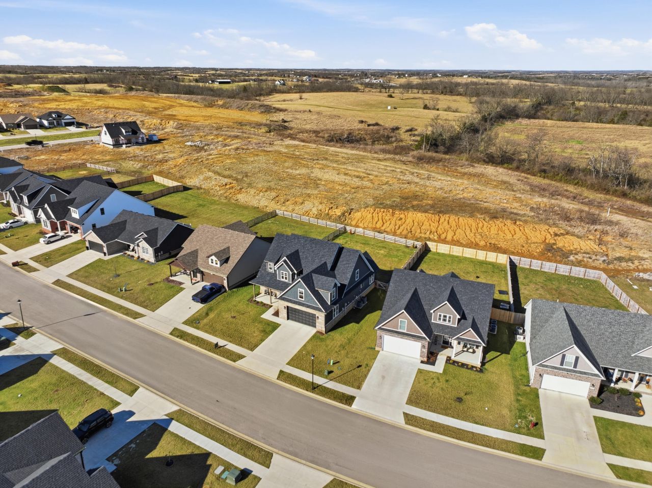 Completed in 2024, this meticulously maintained 4BR/2.5BA home offers an intentional, spacious design, and upgrades that truly set it apart. The open-concept main level features vaulted ceilings, durable laminate flooring, and an electric fireplace. The kitchen is designed for both entertaining and everyday living, showcasing granite countertops, tile backsplash, stainless appliances, an oversized island, spacious dining area, and a walk-in pantry. The primary suite is privately situated on the main level and includes a large walk-in closet and a beautifully finished bath with tiled shower. A private guest 1/2 bath and utility room complete the first level. Upstairs, you'll find two generously sized bedrooms, a full bath, and an oversized bonus room over the garage serving as the fourth bedroom ??? ideal for guests, media space, or office. Walk-in attic storage provides valuable additional space rarely found in newer homes. Outdoor living is thoughtfully executed with a covered patio, extended grilling area, plank-fenced yard, and a discreet trash enclosure that reflects the sellers' meticulous care. An oversized two-car garage with an 8-foot door adds versatility for larger vehicles or storage. Located in a sought-after community offering a dog park, fishing pond, walking trails, and convenient access to shopping, dining, and the interstate, this home delivers the quality, layout, and excellent condition that you have been looking for.