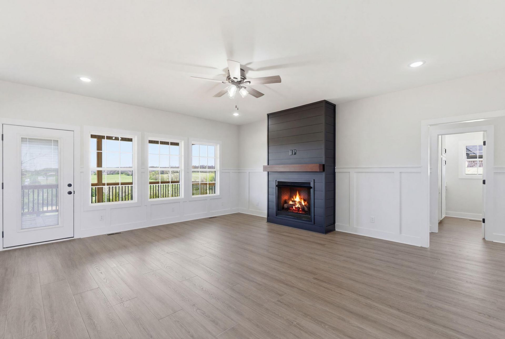 Country living awaits in this immaculate One-Level Ranch with Premium Luxury Finishes throughout sitting on a 1.25 acre mostly level LOT! This beautifully crafted 4BR 2.5 BA w/2 Car Garage home offers an all brick construction with elegant stone accents & covered front porch (18 x 6). A spacious entry welcomes you with luxury vinyl plank (LVP) flooring and an open, airy feel. The expansive open-concept living area boasts a stunning custom fireplace with a bold accent wall & elegant wainscoting detail that truly elevates the entire home. All sleek matte black fixtures throughout. Entertain with ease in this stunning chef's kitchen, thoughtfully designed for both everyday living and hosting. Featuring 42 custom white cabinetry with sleek hardware, a massive center island (quartz), beautiful designer quartz countertops, and stainless steel appliances. Designer vent hood that creates a true focal point, accented by a stylish tile backsplash that adds warmth and texture. The flexible front room is ideal for a home office, formal dining area, or additional entertaining space, featuring tall ceilings and abundant natural light. Split-bedroom design includes three generously sized bedrooms with ample closet space and a well-appointed full bath featuring an extended quartz vanity. The Owner's Suite features LVP flooring, recessed lighting, & country views. The spa-like owner's bath features a double-bowl quartz vanity, a free-standing soaking tub, a huge custom-tiled walk-in shower, and a spacious walk-in closet. Spacious laundry room. The extra-wide garage is fully insulated and equipped with an opener and remote. Outside, enjoy a professional landscaping package and soak up the sunsets under your 29 x 6 covered back porch (ceiling fan) overlooking the beautiful rolling hills of the Bluegrass. This exceptional home offers quality craftsmanship and thoughtful details throughout. Call today! Located minutes from the Robert Martin Bypass, Shopping and I-75. A Must See!!