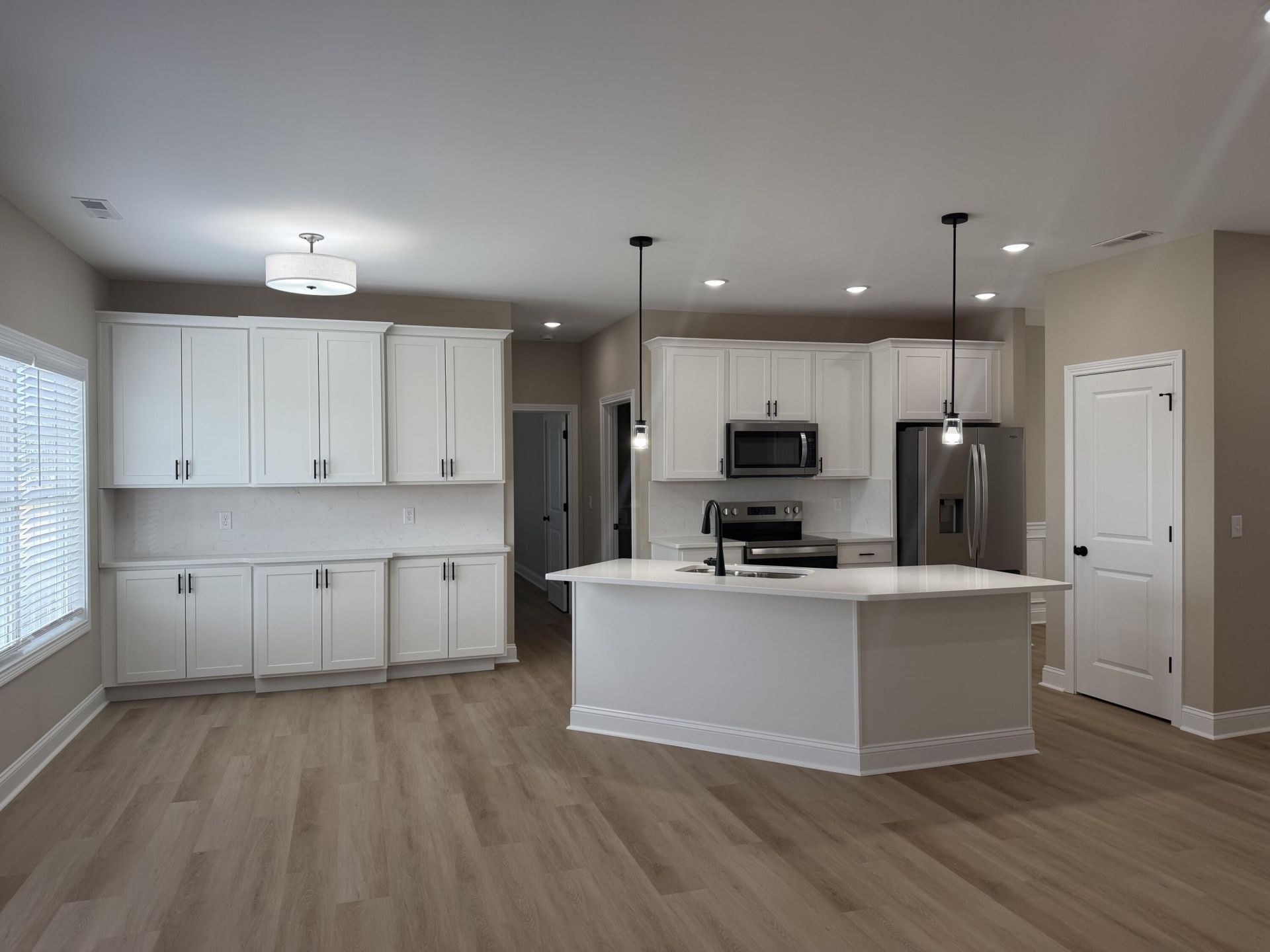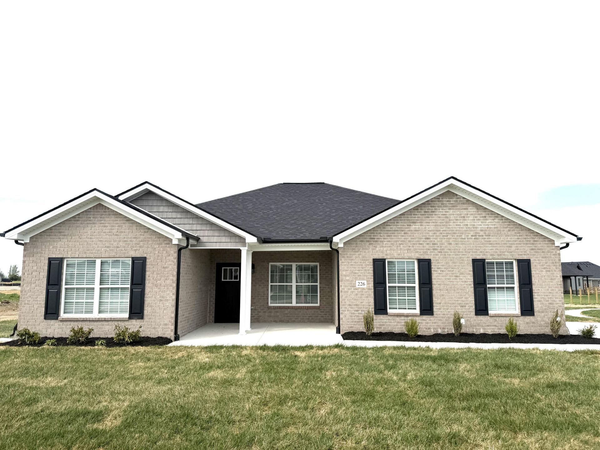 This beautifully designed ranch offers the highly sought-after split bedroom floor plan, providing both comfort and privacy. The formal dining area also serves as a versatile flex space???perfect for a home office, playroom, or additional living area. The kitchen is a true highlight, featuring all stainless steel appliances, a spacious pantry closet, a breakfast nook with a built-in buffet, and a convenient bar for casual dining. The open layout flows seamlessly into a large family room, ideal for entertaining or relaxing at home. Retreat to the primary suite, where you'll find a gorgeous walk-in shower with sleek glass doors. Situated on a perfect, flat lot in a quiet cul-de-sac, this home also includes blinds installed throughout???courtesy of the builder???so it's truly move-in ready. Don't miss your chance to be part of this exciting new subdivision!