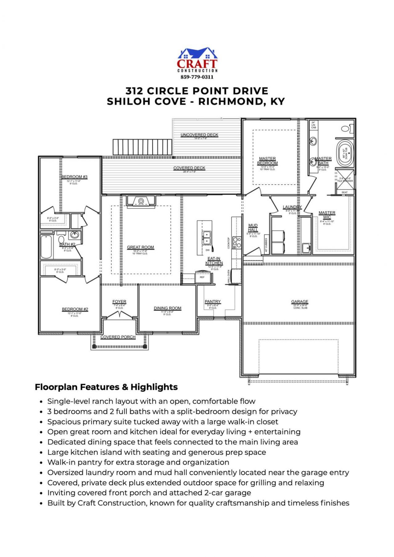 Craft Construction is known for building homes that feel both polished and practical, and this new ranch in Shiloh Cove is a perfect example. From the inviting gable-front porch and welcoming foyer, the layout opens into a spacious main living area with a warm, neutral color palette, designer fixtures, and timeless finishes throughout. Set on a large lot backing to a treeline, the property offers a level of backyard privacy that is becoming harder to find in new construction. With quick access to I-75, you are ideally positioned between Richmond and Lexington, with Hamburg just 15 minutes away for abundant shopping and dining options. The kitchen is designed for both style and everyday function, centered around a large island with an apron-front sink, quartz countertops, soft-close cabinetry, and specialty organizational storage to keep essentials within easy reach. An upgraded stainless appliance package includes a wall oven and microwave, along with a custom range hood, and the spacious walk-in pantry adds even more convenience. The living area is anchored by a stunning stone gas fireplace, bringing warmth and character to the heart of the home. The split-bedroom layout provides privacy, with the primary suite tucked into its own corner of the home. The ensuite bath features a large double vanity, soaking tub, and a fully tiled shower. One of the most functional everyday spaces is the oversized laundry room, finished with herringbone tile flooring, cabinetry, a folding counter, and sink, connecting directly to the large primary closet for a seamless routine. Outside, a covered deck and extended grilling area overlook a half-acre lot with treeline privacy, offering space to relax, entertain, or simply enjoy the outdoors. A rare conditioned storage area beneath the home provides flexible room for hobbies, seasonal storage, or future projects. The tankless hot water heater is a great bonus feature ensuring you will never run out of hot water. More photos will be available as construction progresses, with completion currently expected in May 2026.