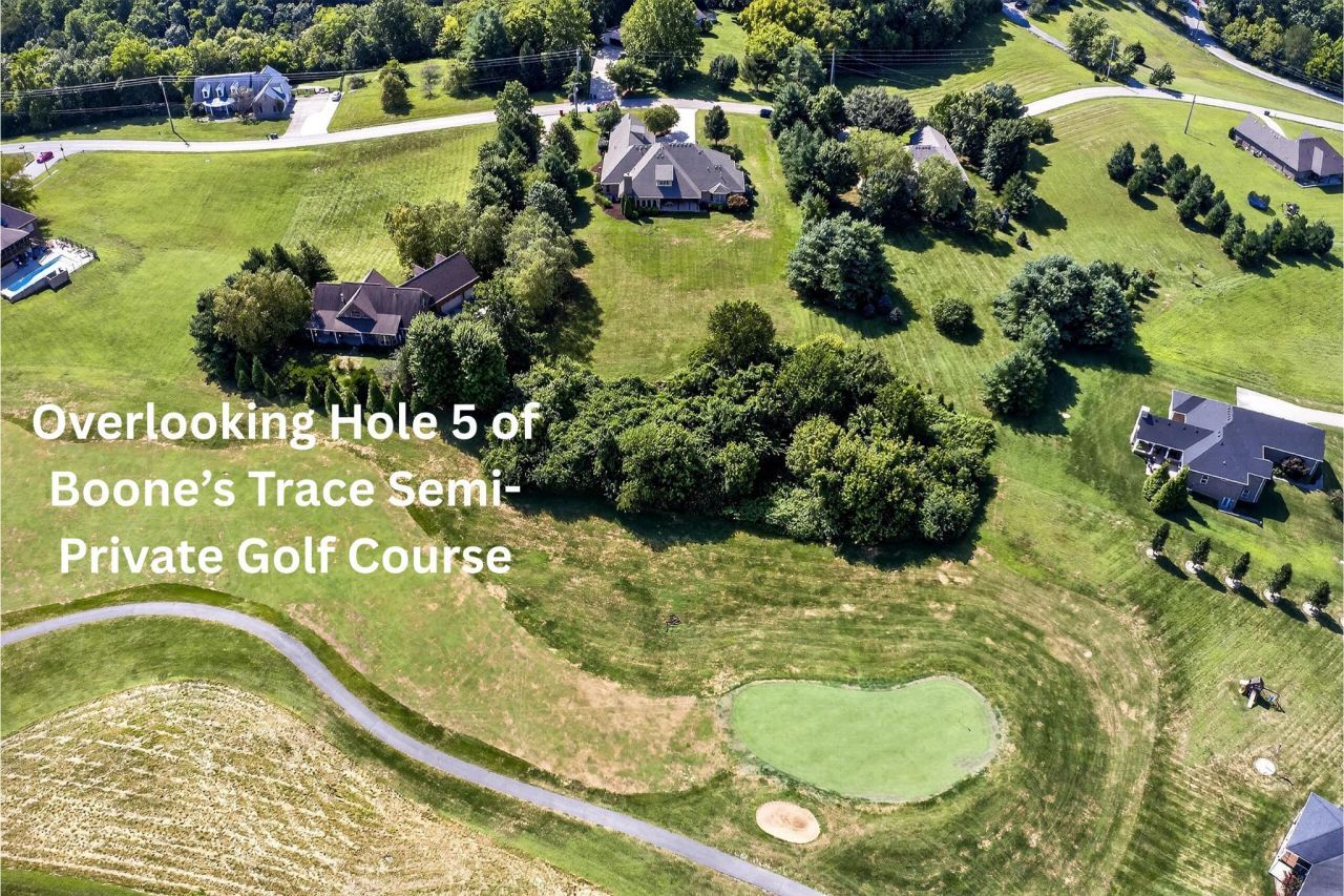 Beautiful and spacious 4-bedroom, 4-bath, custom built home offering 6,050 sq ft of thoughtfully designed living space in the private, gated Boones Trace community. Situated on a flat 1.35-acre lot overlooking hole 5 of the golf course, this home offers stunning sunsets and serene views. Inside, you'll find Travertine tile in the kitchen and luxurious primary bathroom, a large mudroom with built-in shelving, and a generous primary suite featuring an additional flex space perfect for a home office, treadmill, or potential second closet. The second floor includes a rec room and a bonus room with a convenient kitchenette. Abundant storage throughout the home. New roof and gutters (2024), new stone fireplace, conditioned crawl space, 3-car garage, and an invisible fence. The upstairs finished space would make a perfect setup for a second living space for multi-generational living. Enjoy the security of 24/7 guarded access, plus community amenities including a pool and clubhouse. For additional peace of mind, there is a One Year Home Warranty being offered. Just a short drive to Lexington???this is golf course living at its finest!