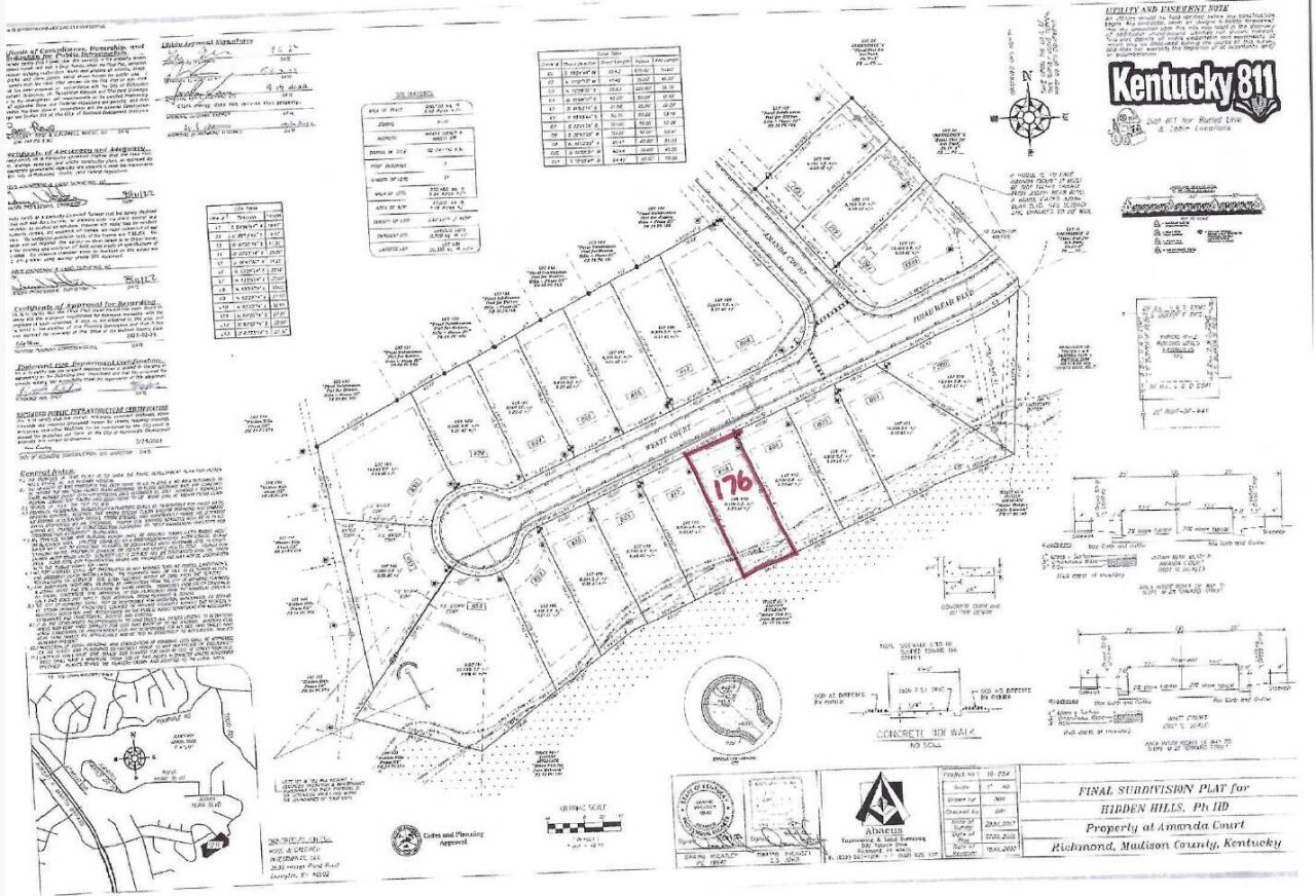Lot #176- Build your dream home on this beautiful lot in the heart of Madison County! Platted lot ready to build on! Tree-lined lot perfect for building a home with a walk-in/Walk-out basement! Several lots listed, call for a private tour of multiple building site options in the Hidden Hills Subdivision! All infrastructure is completed. Plat and restrictions are provided. Developer to approve all house plans prior to building. This lot is part of a larger parcel that can be sold all together or individually.