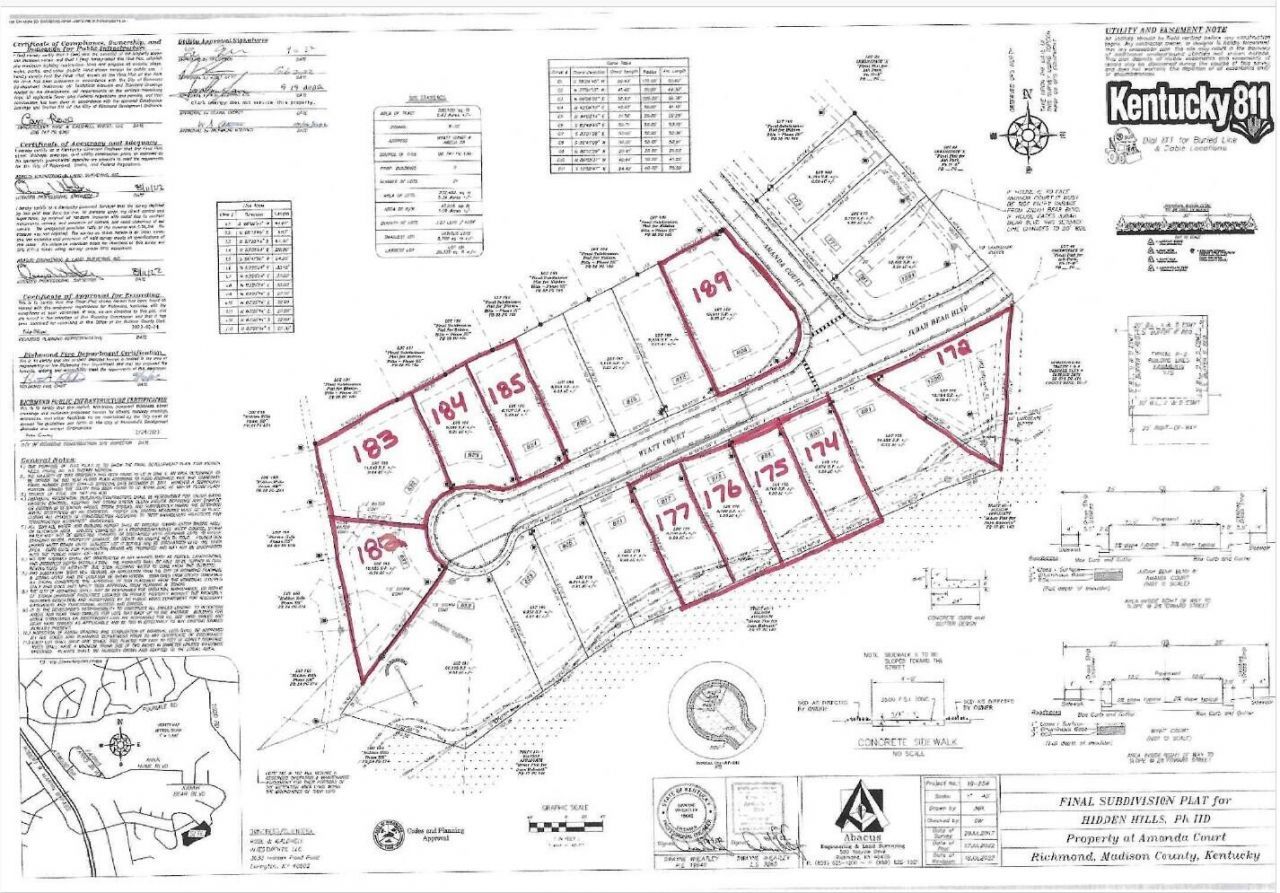 Lot #183- Build your dream home on this beautiful lot in the heart of Madison County! Platted lot ready to build on! This lot is perfect for building a custom home on a crawl space. Several lots listed, call for a private tour of multiple building site options in the Hidden Hills Subdivision! All infrastructure is completed. Plat and restrictions are provided. Developer to approve all house plans prior to building. This lot is part of a larger parcel that can be sold all together or individually.