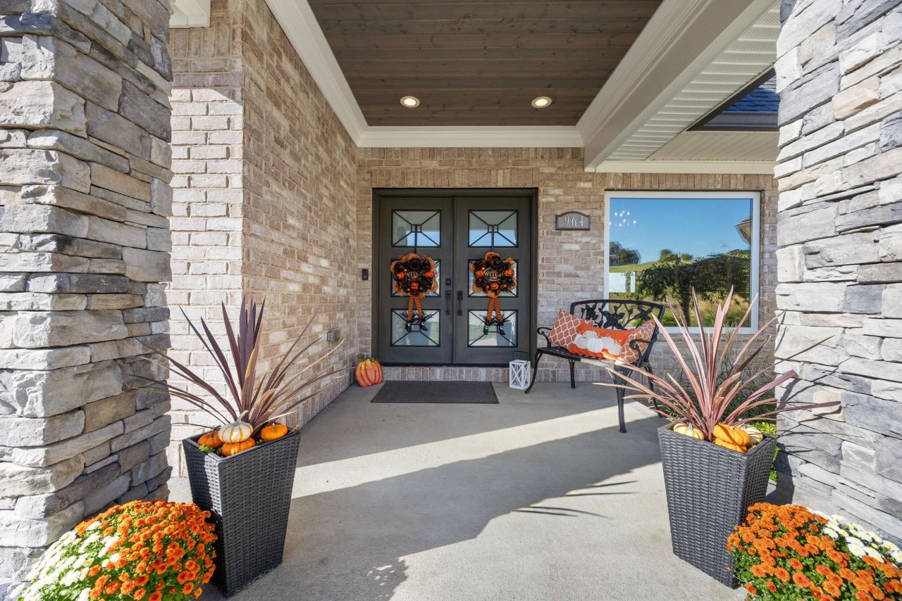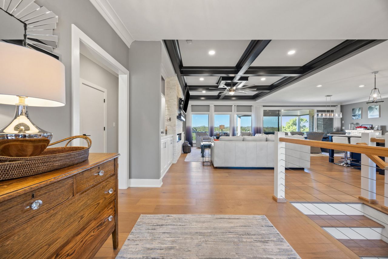 Luxury Living in Boone's Trace Gated Golf Course Community Discover this stunning custom design ranch home with a full finished walkout basement, ideally situated on a quiet cul-de-sac and backing to the fairway. Step inside to an open design where white oak engineered wide-plank flooring flows throughout the main living area. The great room impresses with coffered ceilings, a gas-log fireplace, built-in shelving, and a wall of windows that create a seamless indoor-outdoor connection. The gourmet kitchen is a chef's dream, featuring quartz countertops, a massive island with seating, designer tile backsplash, pot filler, gas range, double ovens, wine cooler, coffee bar, and a walk-in pantry. A mudroom adds everyday convenience. The split-bedroom layout offers a private primary retreat with direct access to the covered deck, a spa-like bath with a soaking tub and oversized tiled shower, quartz counters, and a custom walk-in closet. Two additional bedrooms share a stylish Jack & Jill bath, plus there's a half bath for guests. The covered back deck is truly the pinnacle of outdoor living, overlooking the golf course and perfect for entertaining or quiet evenings. The open staircase leads to a beautifully finished basement with luxury vinyl flooring, a second fireplace, family room, wet bar, fourth bedroom, full bath, and a golf cart garage. Walls of windows flood the space with natural light, and a walkout patio extends your living outdoors. Additional highlights include an oversized two-car garage and a carpet-free interior for easy maintenance and timeless style.