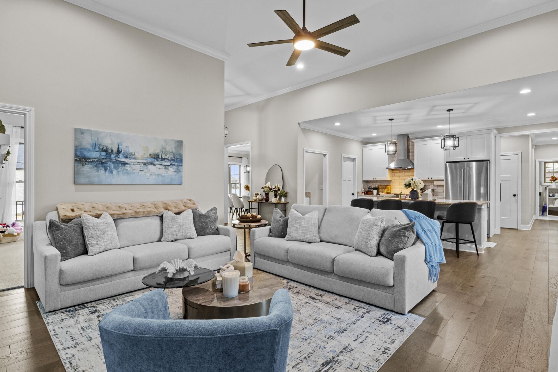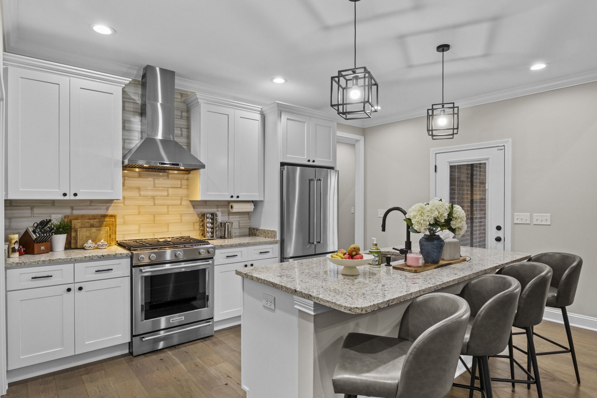 Welcome to this exceptional 2024-built home offering 4,220 square feet of beautifully upgraded living space with 5 bedrooms and 3.5 baths. Designed with both luxury and functionality in mind, this home features a walkout basement, inviting fireplace, and a side-entry garage that enhances curb appeal and sets it apart from typical new construction. The heart of the home is the upgraded chef's kitchen, featuring a custom designer backsplash, gas range, upgraded hood vent, and enhanced appliance package???all still under warranty???creating a perfect space for both everyday living and entertaining. The fully finished walkout basement offers incredible versatility with upgraded luxury vinyl plank flooring throughout, replacing standard carpet, and includes a dedicated gym area with specialty flooring???ideal for fitness, recreation, or additional living space. Outdoor living has been thoughtfully elevated with a stained deck, multiple patio areas complete with mounted TV, custom landscaping, and enhanced exterior lighting at both the front of the home and the basement patio. The backyard also includes a playground set, offering a perfect blend of relaxation and entertainment. Additional upgrades include an electric vehicle charging outlet in the garage and custom garage wall shelving, adding both convenience and functionality. With high-end upgrades already completed and a true move-in-ready feel, this like-new home delivers modern luxury, comfort, and everyday convenience without the wait of new construction.
