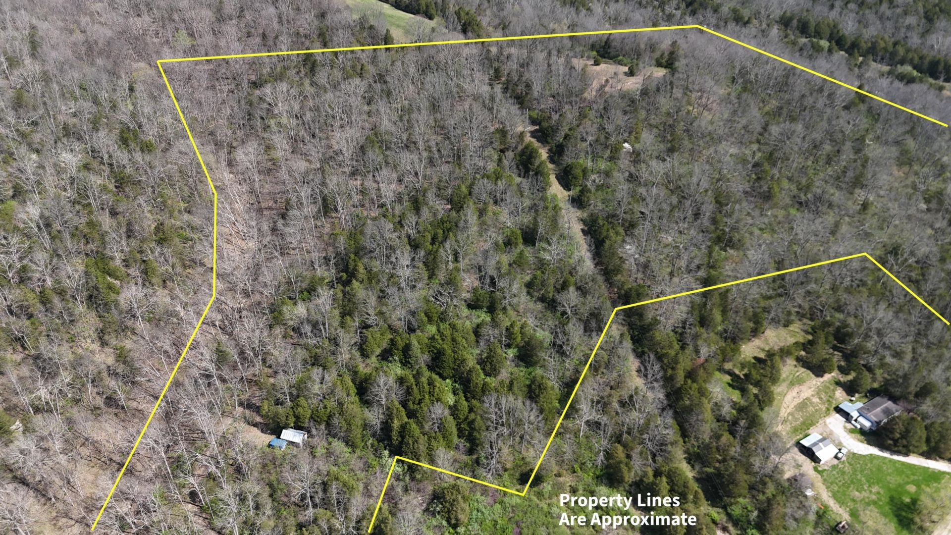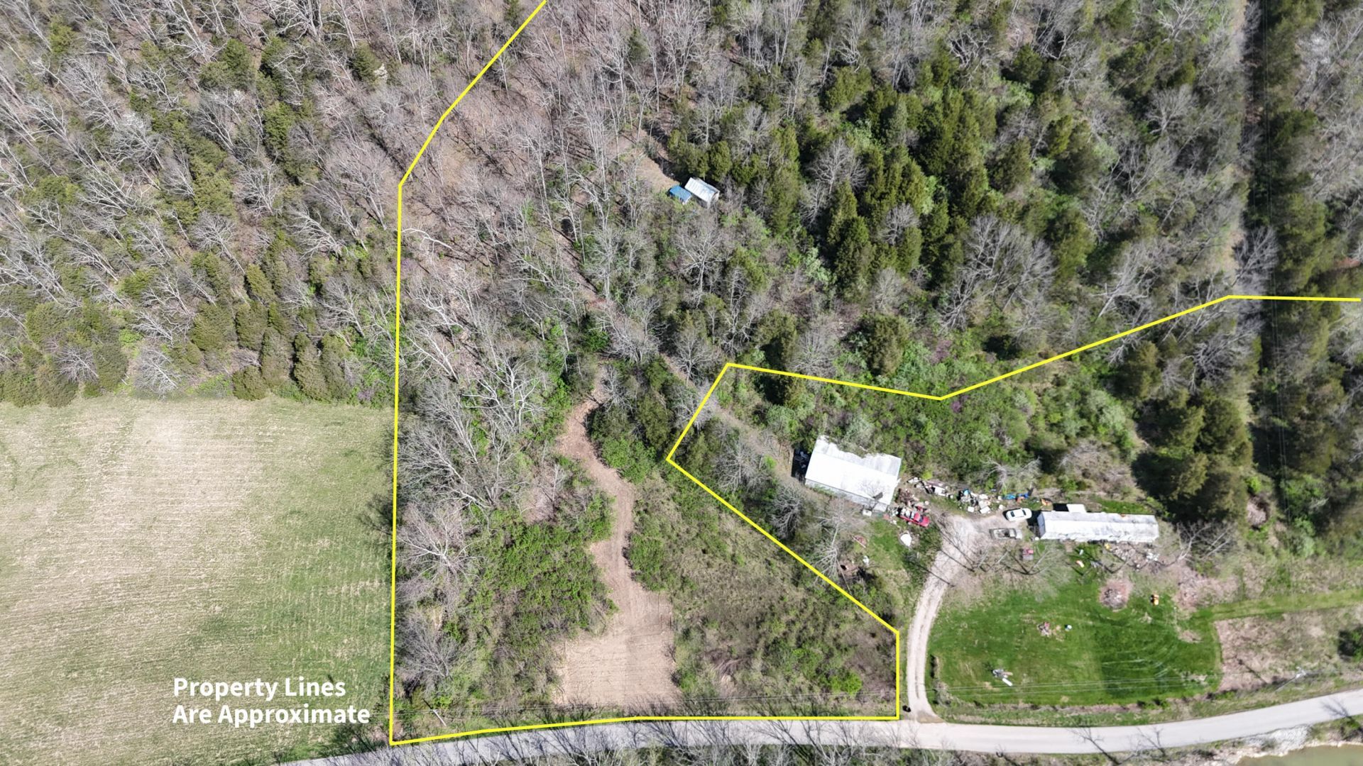 This versatile +/- 22.1-acre tract is located in Worthville, Kentucky, in Owen County, and offers a mix of wooded terrain, elevation change, and accessible features. It may appeal to those seeking recreational land, hunting opportunities, or a rural setting for a future home or cabin. The property includes approximately 1,000 feet of total road frontage, with roughly 300 feet along Big Twin Creek Road and about 700 feet along Cull Road. These multiple access points provide flexibility, with the primary entrance being a recently cleared access point off Big Twin Creek Road. From the primary entrance, an established trail system runs throughout the property and continues up to the higher elevations. The trail allows for easy navigation across the tract and connects several key features, including a 2.5-acre cleared area at the top, two ponds, and a hunting cabin. The roughly 2.5-acre clearing offers multiple potential uses, including hunting food plots, small-scale agriculture, or a potential building site for a future home or cabin. The existing cabin structure is not being assigned any value in the sale and is being sold as-is. It could potentially be rehabilitated if desired, or removed depending on the buyer's plans. The land features an estimated 200 feet of elevation change from the road frontage to the upper ridge, providing both scenic views and diverse terrain. The property is predominantly wooded, offering a mix of cover and natural habitat that supports local wildlife, with consistent signs of deer and turkey activity. The wooded areas provide excellent bedding cover and natural travel corridors. Water features, including the two ponds and several wet-weather creeks, contribute to a well-rounded habitat that can support wildlife year-round. A power line also runs through part of the property, creating an additional open corridor that is ideal for hunting and wildlife movement. The primary entrance area along Big Twin Creek Road includes approximately half an acre within a FEMA-designated floodplain. Buyers are encouraged to conduct their own due diligence regarding land use, floodplain considerations, and any intended improvements. Come explore all the possibilities this property has to offer!