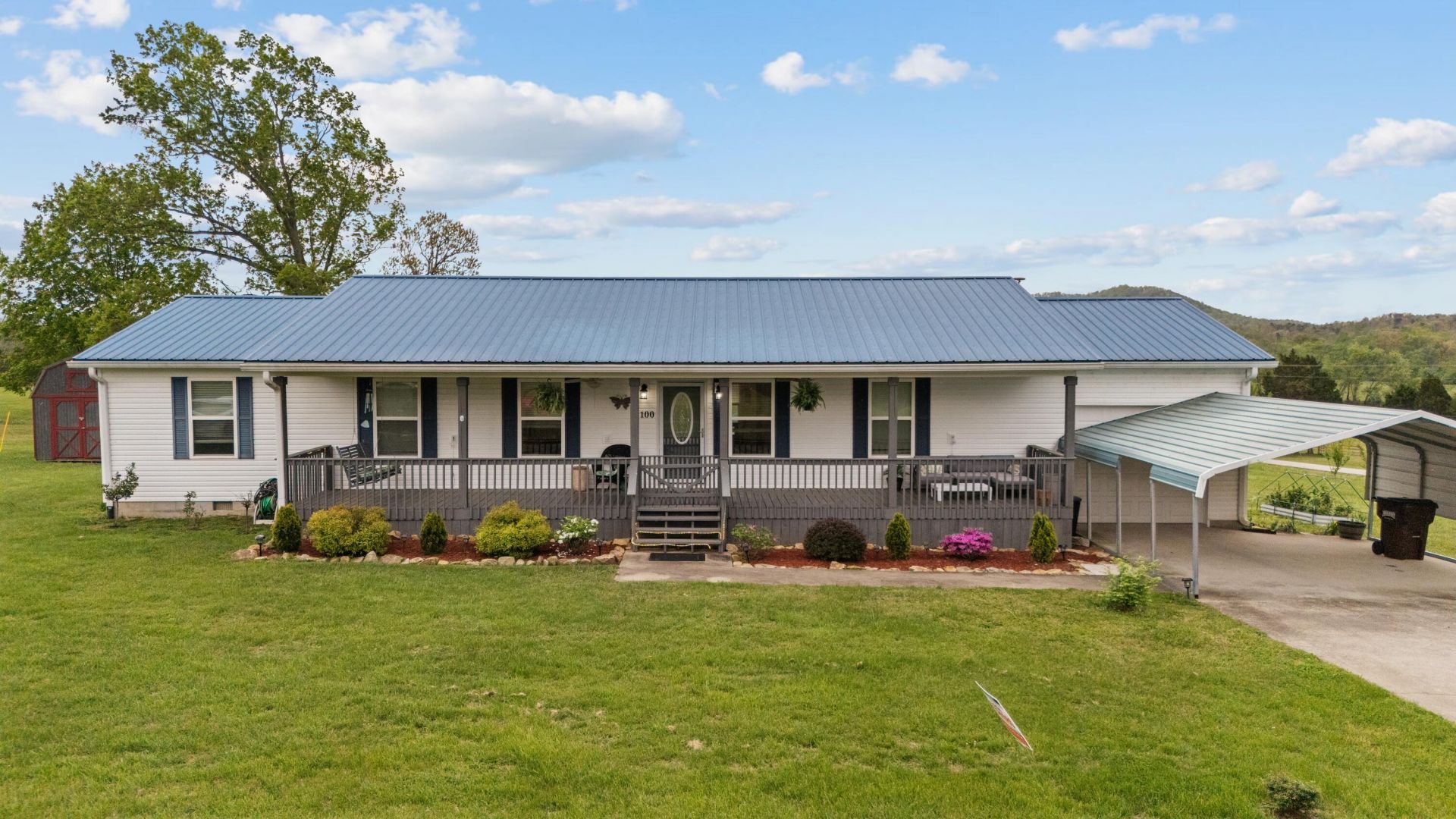 Charming ranch home with an inviting front porch. The open concept living room, dining area and kitchen is perfect for entertaining. This thoughtfully designed floor plan puts the primary bedroom on one side of the house while the other 3 bedrooms are on the other side of the house. Two full baths, one on each end of the house. In the hallway you will find a storage room that could be made into an office or walk in closet. There is a one car garage with a car port in front of it for extra sheltered parking. Out back you will find a deck, fenced in yard and a storage building. The lot is larger than the fenced in area. Enjoy your morning coffee on your porch swing on the front porch.
