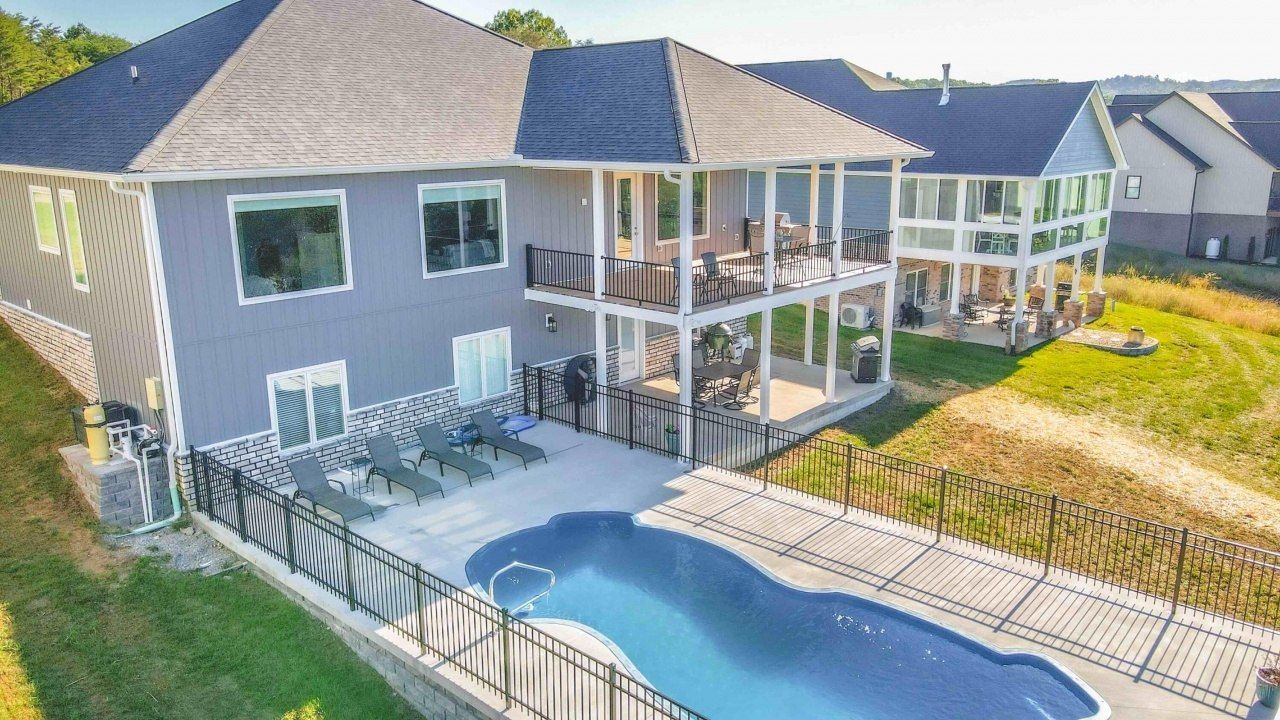 Luxury Home located in the gated community of The Bluffs at the Villas of Woodson Bend. Heated inground pool overlooking Lake Cumberland, gated with a powder coated aluminum fence. Lakefront land deeded with sale of the home has nearly 70 feet of lake frontage and located within walking distance/ golf cart ride of the private community marina. No expense was spared on this custom build. This home was built with every amenity in mind. There are 3 oversized garages to allow for ample lake toy storage, equipped with electric car charging and generator hook up. This home was insulated with R33 insulation in the walls and R 44 in the ceilings. The garage is also insulated. There are 2 hot water heaters, 83 and a 50 gallon, 2 heat pumps, Steel Beams in the basement to allow for an open floor plan. Open floor plan on the main level with a chef's kitchen, oversized kitchen island, open to the great room. Home has 10 foot ceilings with 8 foot solid wood doors. Crown molding, 5 in red oak hardwood flooring, glass stairway railing panels, laundry first floor, large Pella windows, 2 ensuite master's on the main level, a half bath, extra large ceiling fans, oversized