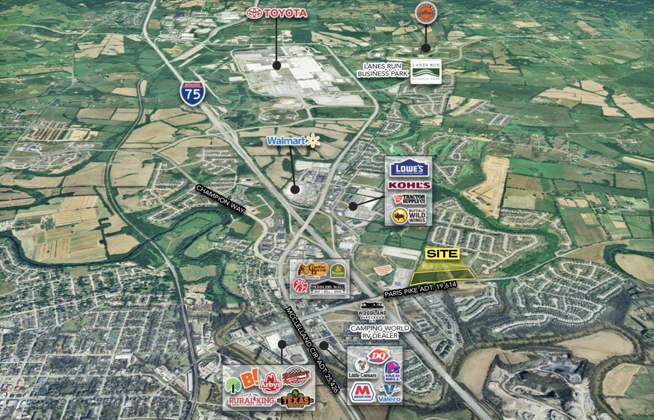 Paris Pike at Falmouth Drive in Georgetown, KY is a 10.75 acre lot zoned B-4 (Community Commercial). The lot is divided by Falmouth Drive with the western portion being 7.511 acres and the eastern portion being 3.233 acres. The highest and best uses as currently zoned are grocery, retail, c-store/gas stations, restaurants, banks, professional/medical office, etc. With a re-zone, other highest and best uses would be hospitality and/or multifamily.Paris Pike at Falmouth Drive is located off of the southern most Georgetown, KY (Lexington MSA) Exit. This property is just 0.3 miles from the I-75 interchange, 3.8 miles from the Toyota Manufacturing Plant (+/- 9,500 employees), and 15 miles north of Lexington, KY. Consistently one of the fastest growing markets in KY, Georgetown continues to see growth in housing, multi-housing, office, retail, and industrial sectors of the market.-Closest Georgetown Exit to Lexington, KY-0.3 miles from the I-75 interchangePriced at 2025 appraised value-The property is 3.8 miles away from the Toyota Manufacturing Plant that employs over 9,500 people-Georgetown is consistently one of the fastest growing markets in KY