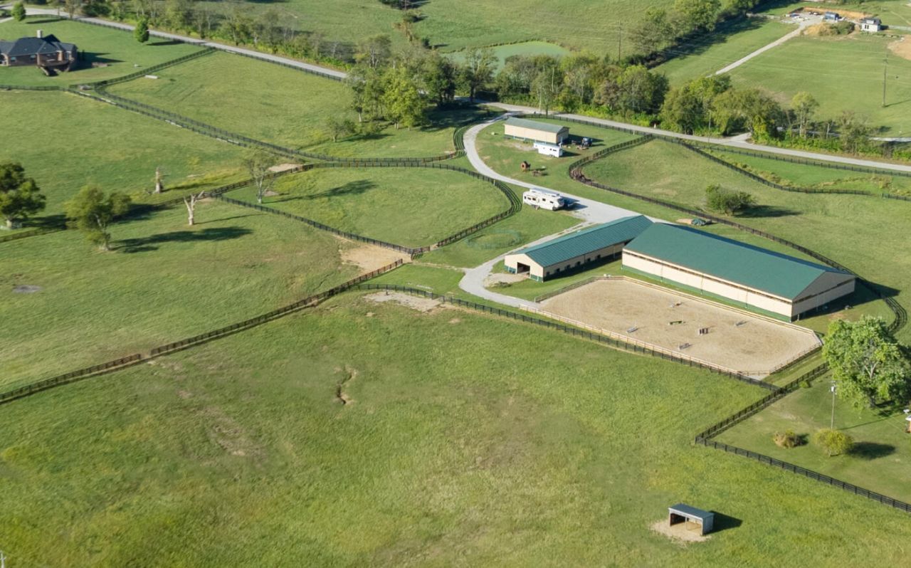 Set across 34 picturesque acres in the heart of Kentucky Horse Country, this exquisite equestrian estate offers the perfect fusion of world-class facilities and refined country living. Located minutes from the Kentucky Horse Park, this facility is designed for professional-level training and competition across disciplines. The centerpiece of the farm is a 19-stall barn featuring 12' x 12' rubber-matted stalls, tongue-and-groove wood finishes, indoor and outdoor wash bays, a heated tack room and bathroom, washer/dryer hookups, and a fully guttered drainage system. The 80' x 160' indoor arena is outfitted with premium Trutek footing and large windows that provide natural light and cross ventilation. The 100' x 200' outdoor arena was completely rebuilt in 2025 with a 7-inch crushed limestone base and 3 inches of mortar sand for exceptional drainage and rideability. Six fenced paddocks, each with individual automatic waterers, are laid out for efficient turnout and easy access to the barn. Additional facilities include a 24' x 60' equipment barn with water and electric, a run-in shed, full RV hookup, and separate utilities for the home and farm???ideal for flexible management or future expansion. Beyond the equestrian facilities, the property's custom five-bedroom home features a walk-out basement, home theater, and expansive living spaces with sweeping views of the pastures, offering the perfect blend of comfort and functionality. Located in one of the most desirable equestrian regions in the country, this property is perfectly suited for professionals, competitors, or discerning enthusiasts seeking a turnkey facility with close proximity to top-tier events, veterinary services, and training circuits.