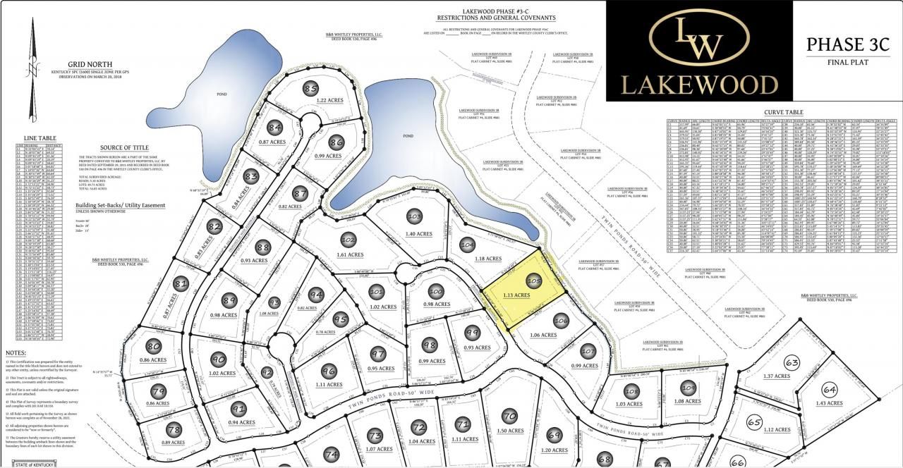 Lakewood, Corbin's newest boat-friendly, RV-friendly subdivision, is a beautiful restricted subdivision with amenities for the whole family. We are about 5 miles from I75 at Exit 25, 7 miles from Grove Marina, 8 miles from Cumberland Falls State Park and 10 miles from Holly Bay Marina.This lot is slightly sloped lot with a view of the pond, It also offers easy access to all of Lakewood's amenities.