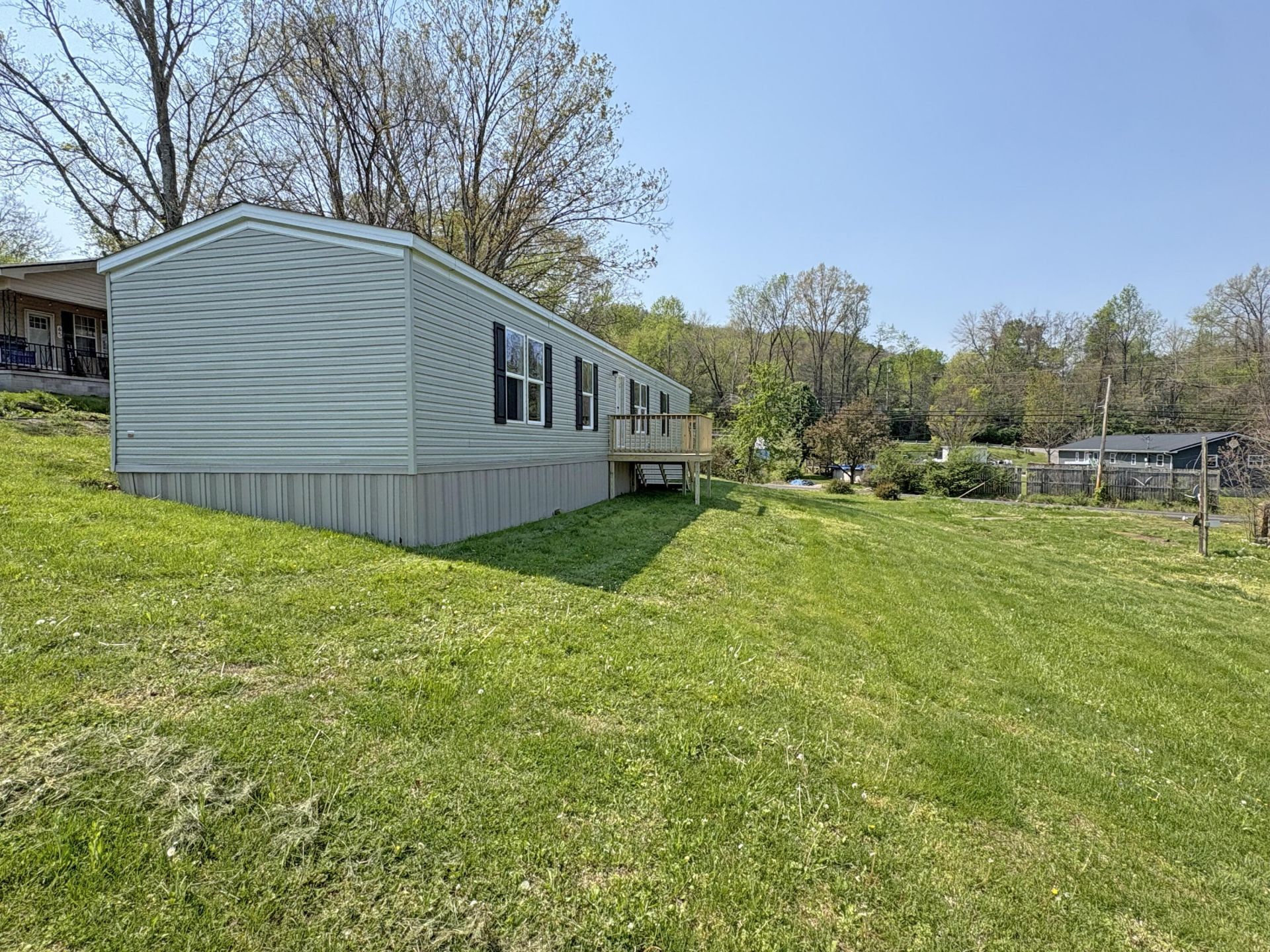 Welcome home to this like-new 2022 3 bedroom, 2 bath singlewide in Williamsburg, KY. Offering about 1,152 sq ft of thoughtfully designed living space, this home features an open concept layout with a spacious living area that flows seamlessly into the kitchen and dining space. The kitchen is equipped with a large island, ample cabinet storage, and modern finishes, making it perfect for both everyday living and entertaining. The split bedroom floor plan provides added privacy, with a comfortable primary suite that includes a private bath. The additional bedrooms are well-sized and share a full second bathroom. Outside, you will find a gently sloping yard and a newly built deck that is perfect for relaxing or enjoying the outdoors. With its newer construction, low maintenance features, and move-in ready condition, this home is a great opportunity for affordable, modern living in Williamsburg. Schedule your showing today.